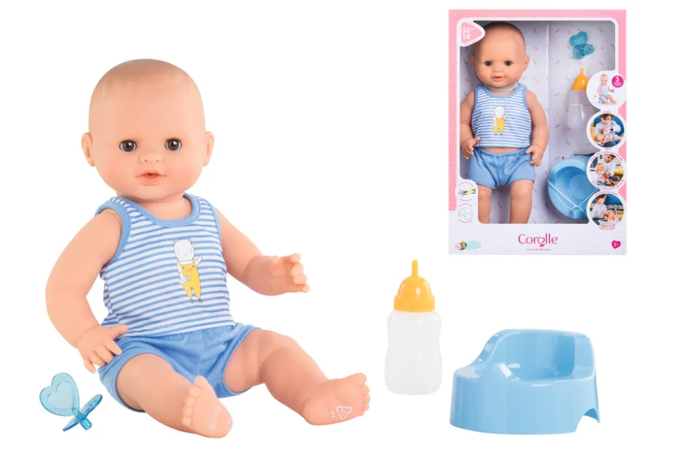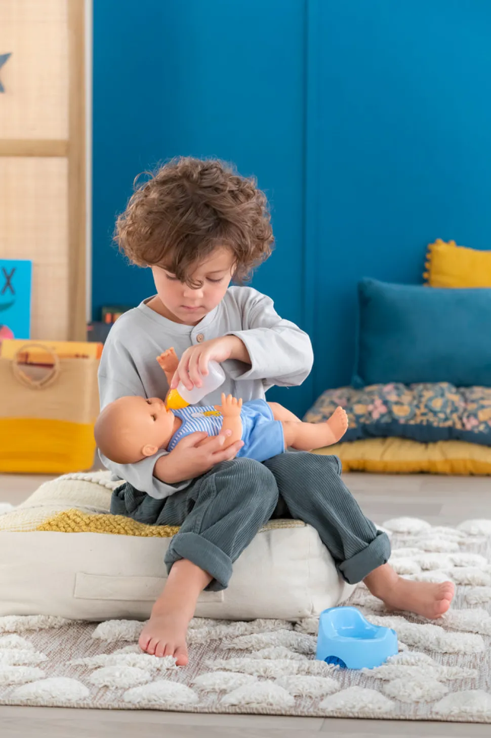 Denne søde babydukke er perfekt til små børn fra 2 år og opefter. Dukken kan drikke af sin flaske og tisse i potten, hvilket gør legen endnu mere realistisk og sjov. Den kan også bades, så dit barn kan tage den med i badekarret for endnu mere leg og hygge.