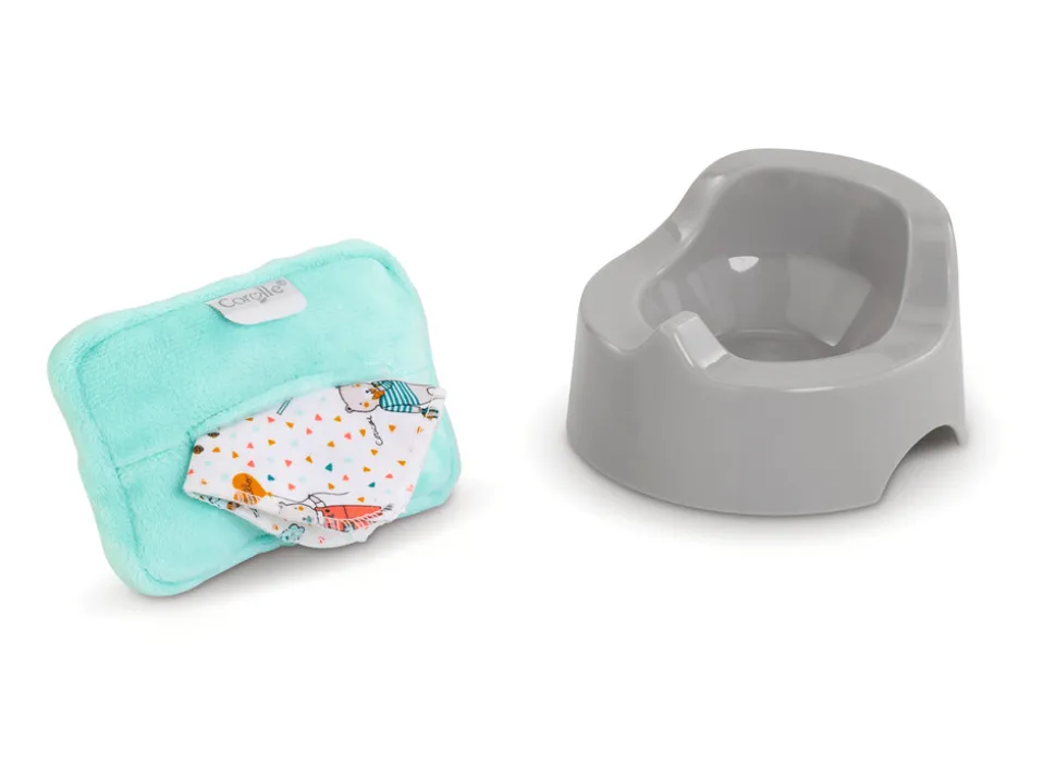 Pottens design gør det nemt for børn at placere deres dukke på den, og den medfølgende stofserviet tilføjer en ekstra dimension til legen ved at lære børn om hygiejne og omsorg. Låget kan nemt tages af og på, hvilket gør det sjovt og interaktivt for børn at lege med.