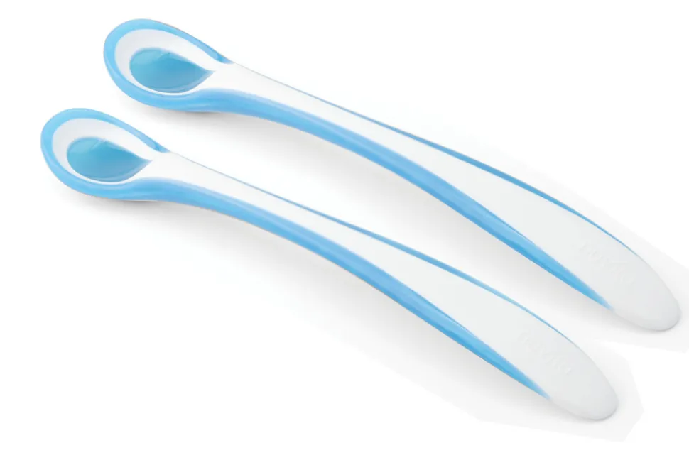 Disse termofølsomme skeer skifter farve, når de kommer i kontakt med madvarer, der er over 37°C, og dermed for varme til babyen. Det lange håndtag giver dig mulighed for bedre at nå bunden af selv i de dybeste skål, eller madbeholder. Passer fra 6. måneder 0 % BPA. Disse skeer er ideelle til de første måltider, når din baby endnu ikke er vant til at blive fodret med en ske. Den specielle form er designet til at følge læbernes naturlige bevægelse, hvilket gør babyens første oplevelser med nye smage og forskellige konsistenser af fast føde mere behagelige og behagelige. De anvendte materialer er fuldstændig sikre og ikke-giftige, og for mere bekvemmelighed kan disse skeer tåle opvaskemaskine og steriliseres.
