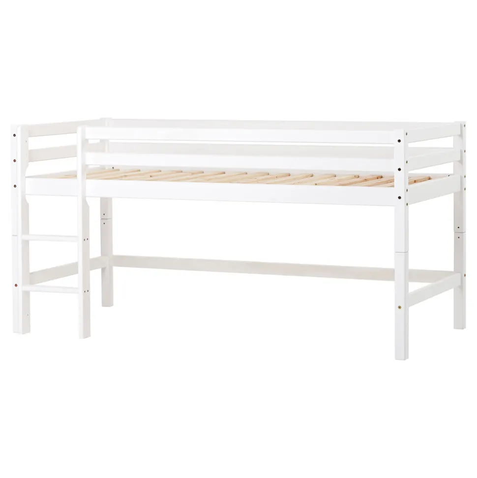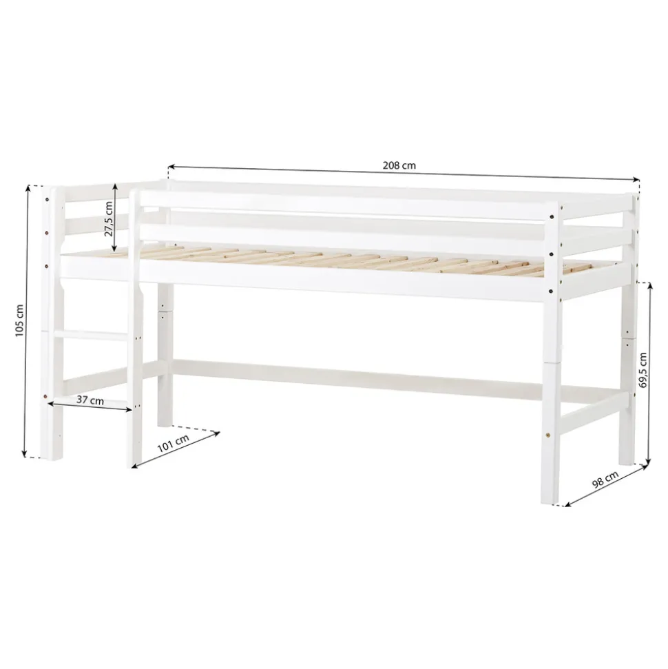 Mere end en sengDenne fine og enkle halvhøj juniorseng fra Hoppekids giver mange muligheder og er derfor mere end bare en seng. ECO Dream halvhøj seng er en smart seng til dem der virkelig ønsker at have lege eller opbevaringsplads under sengen. Hvis behovet opstår hvor der ikke er brug for en halvhøj seng, er det lige til og enkelt at lave den om til en juniorseng – sengen er nemlig delbar. Den store størrelse 90×200 cm giver masser af plads til at vokse på og barnet kan bruge sengen helt indtil de er klar til et teenageværelse. Størrelsen giver samtidig mulighed for at en forælder kan ligge i sengen, fx hvis der skal læses godnathistorie. Med mulighed for disse løsninger, betyder det at sengen vokser med barnets og dets behov.