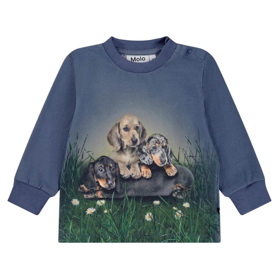 Langærmet bluse i blød, økologisk bomuldsjersey. Designet med ribkanter ved ærmerne og praktiske trykknapper på venstre skulder for nem påklædning.