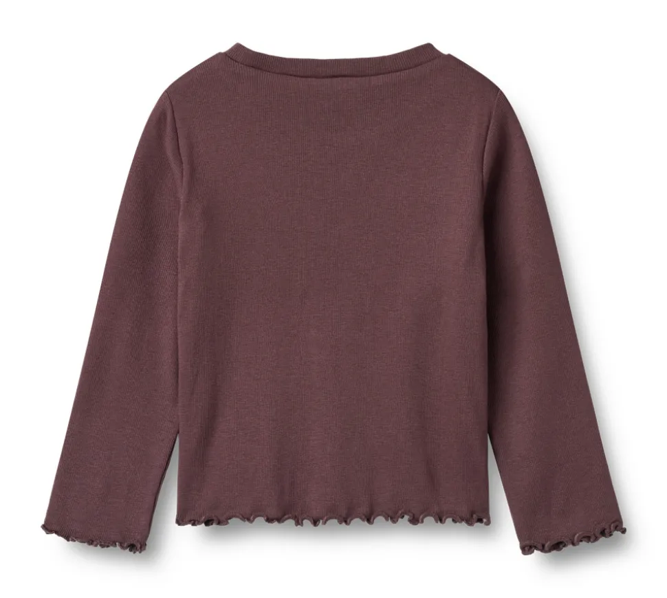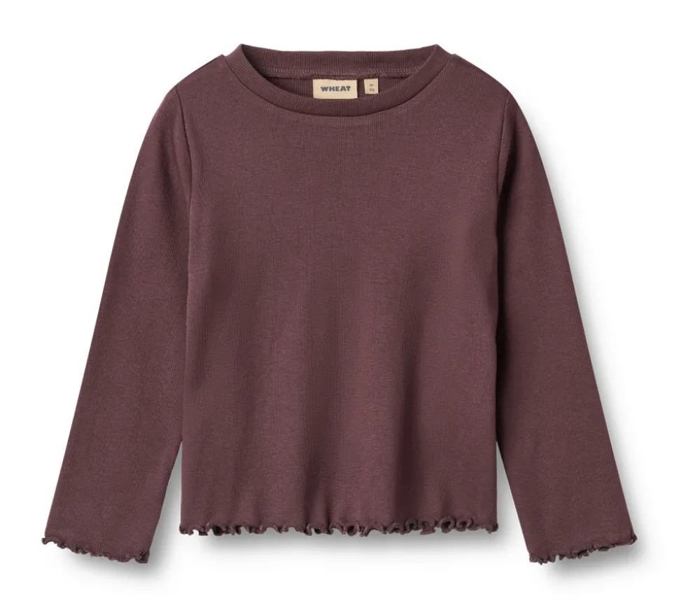 Langærmet rib T-shirt med brede ærmer i en blød blanding af økologisk bomuld og Lenzing modal til børn. Wheat’s T-shirts er en god basis i dit barns garderobe, da T-shirtsene er bløde og behagelige at have på. De kan nemt matches med et par bukser eller en nederdel, eller med en strik udover afhængigt af vejr og anledning.