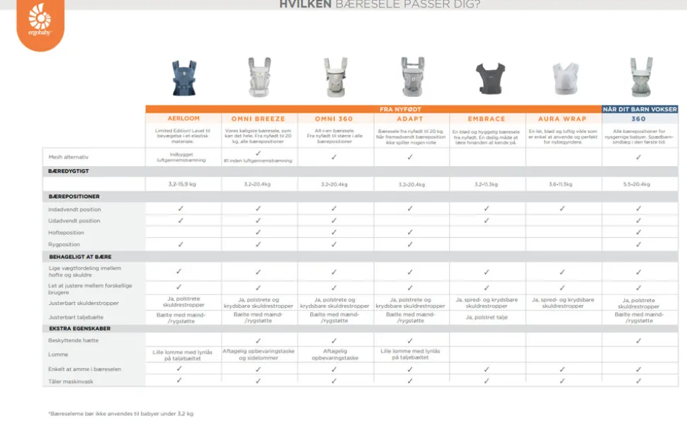 En bæresele kan være svær at undvære og vil hurtig blive en fast del af familiens hverdag, om det er hjemme eller ude. Med en bæresele får man ikke kun hænderne fri men også en god kontakt med baby fra nyfødt. Ergobaby Embrace kan anvendes fra nyfødt (3 kg.) og helt frem til barnet vejer 11 kg.