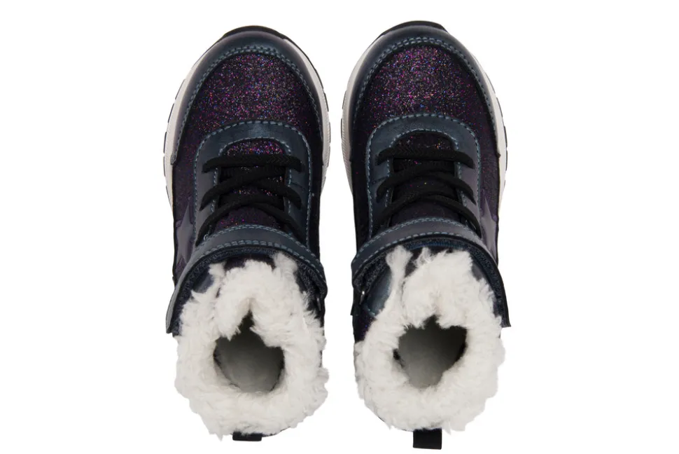 Gør dit barn klar til hverdagens eventyr med en støvle, der er både sjov og behagelig. Den robuste, iriserende overdel med glimmereffekt har elastiske snørebånd og én velcrolukning der sikrer en nem og personlig pasform. Vikings Watershield membran holder fugten ude, mens et varmt for holder kulden væk. En ydersål i gummi giver et solidt greb og plads til fodstropper gør støvlen perfekt til flyverdragten!
