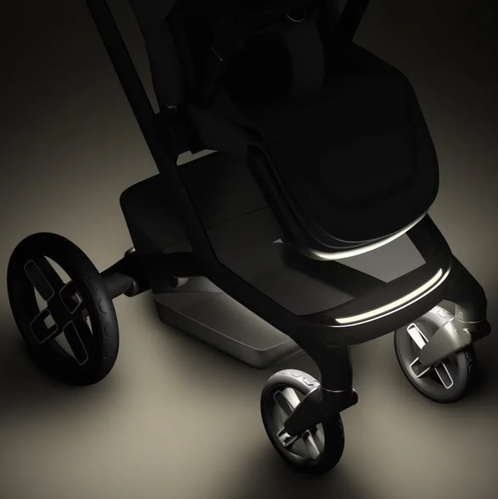 Fames integrerede LumiRide-system med LED-belysning oplyser mørkere gader og svagt oplyste stier, så du og baby altid er sikre og synlige. Hvis din telefon skal oplades, mens du er ude, kan du blot tilslutte den integrerede powerbank.