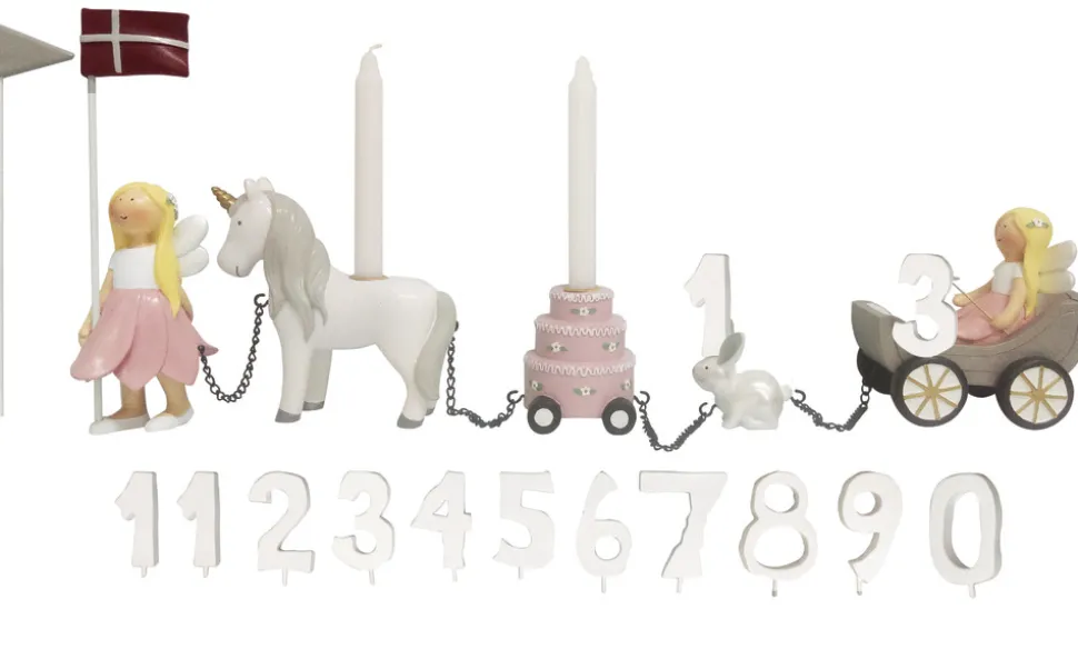 Inklusiv flag og flagranke og 11 tal. Der er plads til to talnumre i toget.