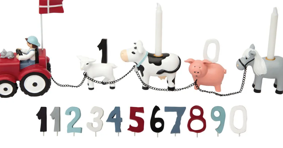 Håndmalet fødselsdagstog med 11 tal. Flag kan tages af.