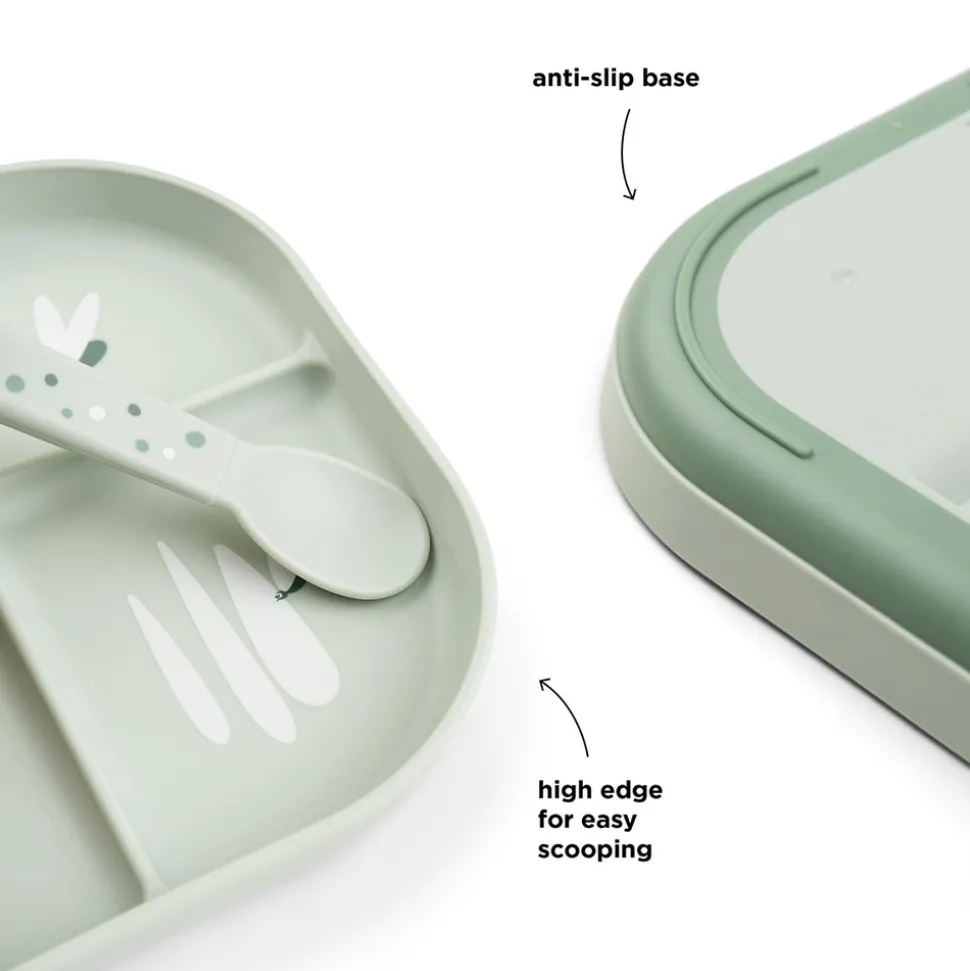 Børnene ved bordet vil elske at spise et måltid af den ruminddelte Foodie tallerken. Et opdelt måltid hjælper dit barn til at fornemme og forstå forskellige smage og konsistenser. Fordel dit barns mad, og lad hvert rum holde maden på plads. Tallerkenens høje kanter hjælper dit barn med at fange maden, mens den praktiske, skridsikre bund sørger for, at tallerkenen bliver, hvor den skal. Tallerkenen er designet til hverdagslivet med børn og tåler både opvaskemaskine og mikroovn.
