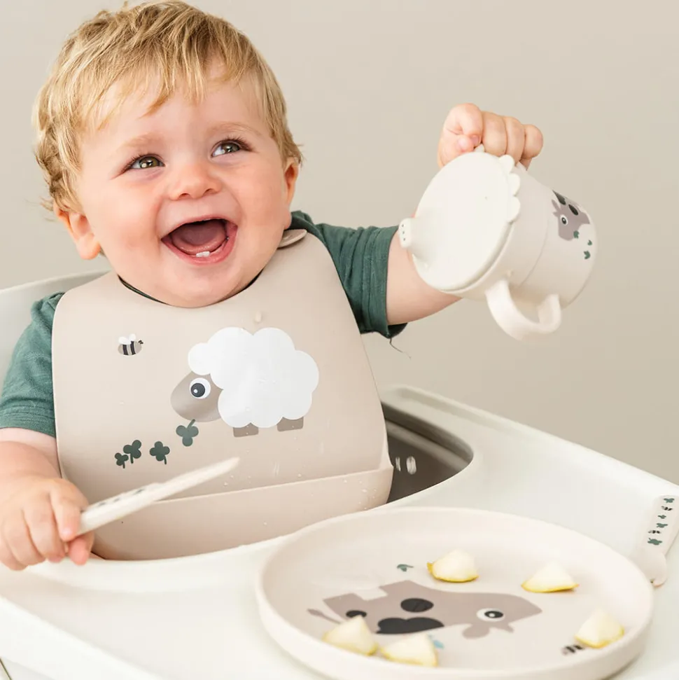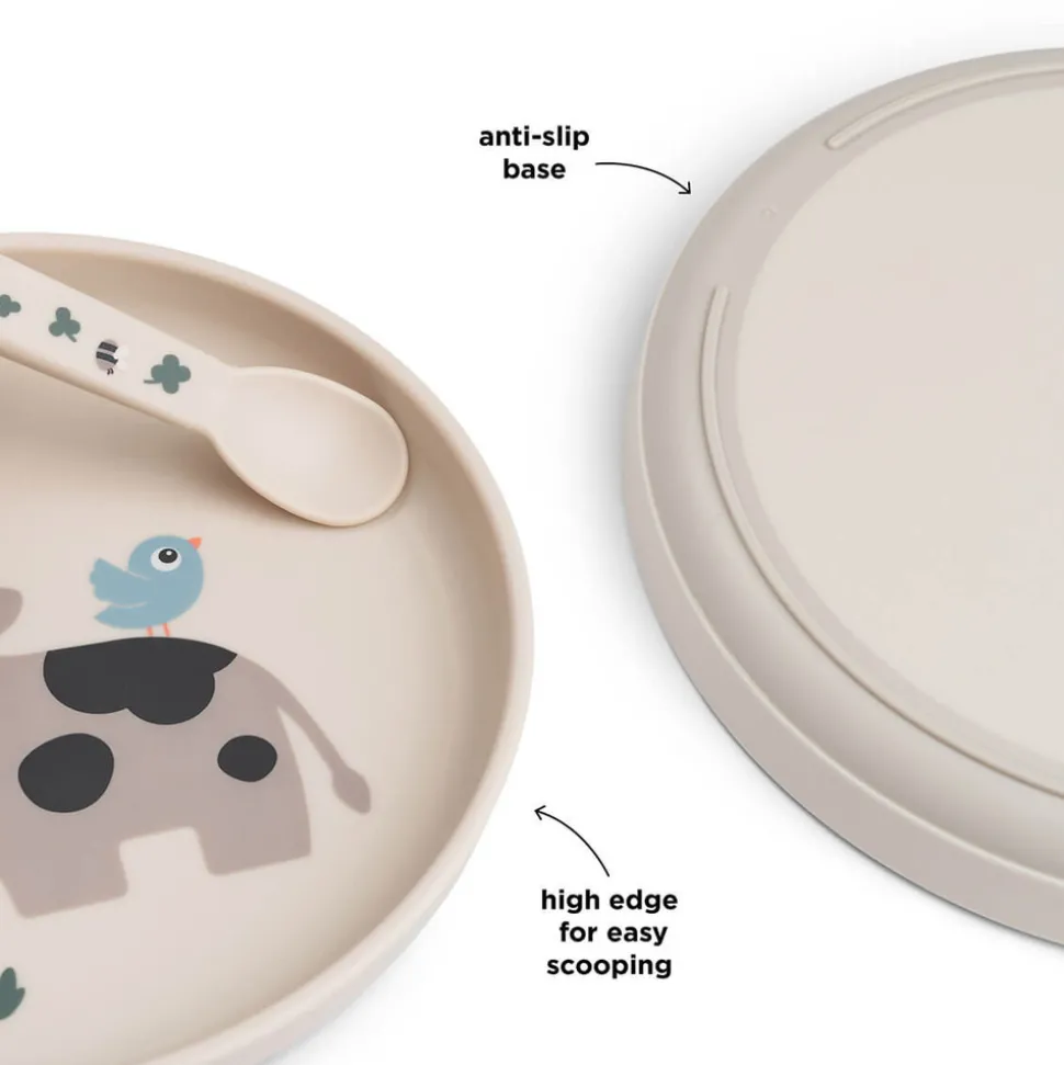 En praktisk antiskrid-base holder tallerkenen stabil under måltidet.