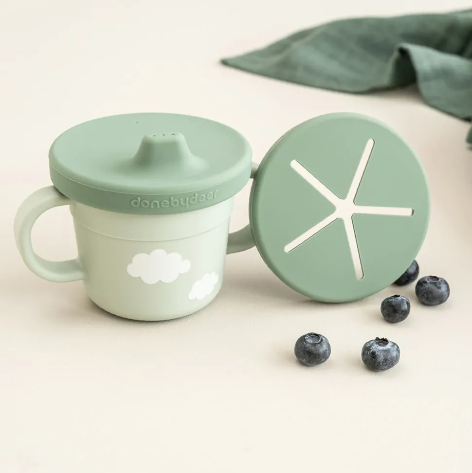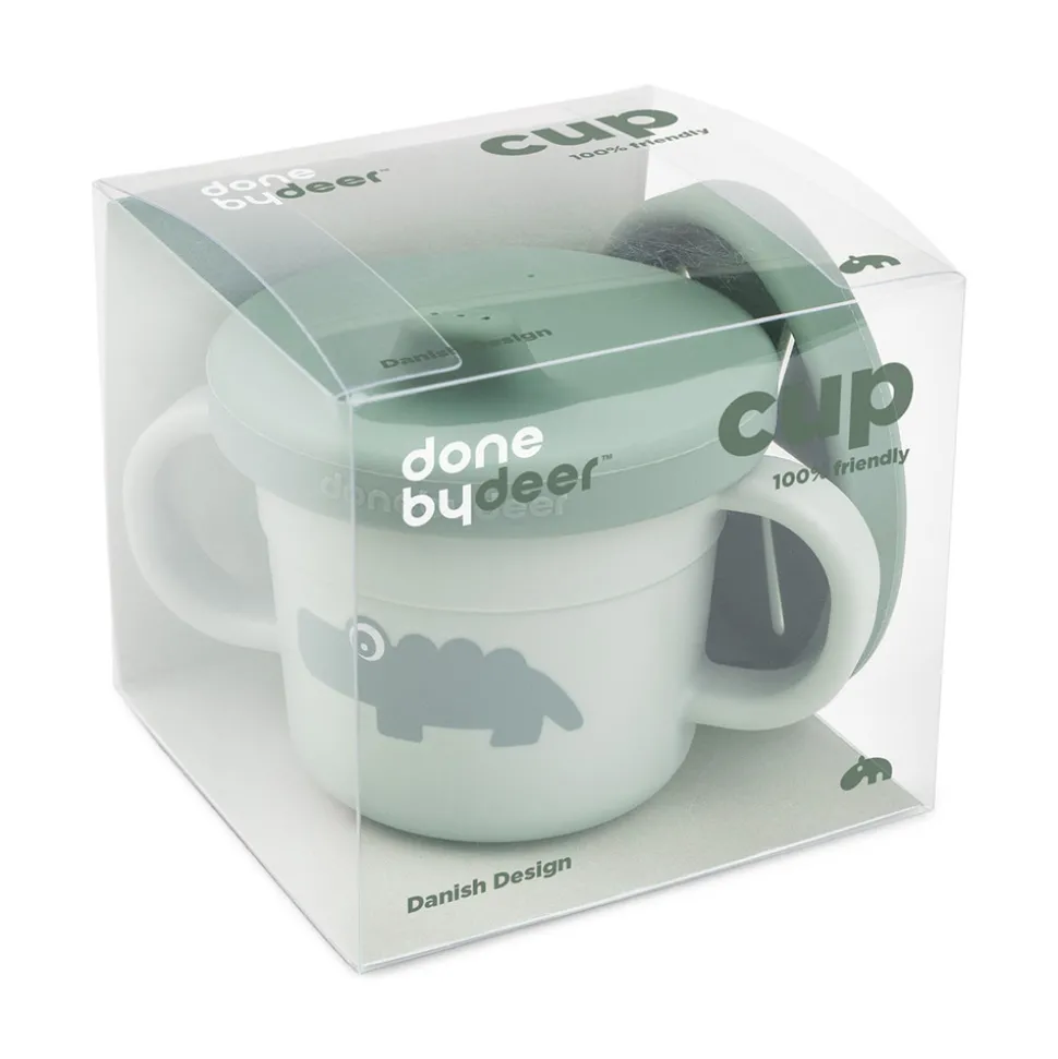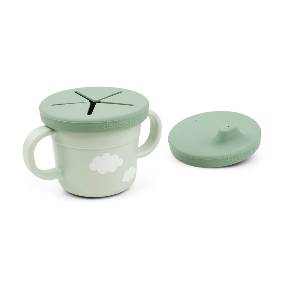Foodie tud- og snackkoppen er perfekt til de små. Snacklåget sørger for at snacks ikke ender overalt i bilen eller barnevognen. Tudkoplåget er spildsikkert, og når dit barn er klar, kan koppen bruges uden låg. De to hanke sikrer et godt greb. 3-i-1-koppen er designet til hverdagslivet med børn og tåler både opvaskemaskine og mikroovn. Efter utallige familiemiddage og børnefester kan tallerkenen affaldssorteres som plast og genanvendes til produktion af nye hverdagsprodukter.