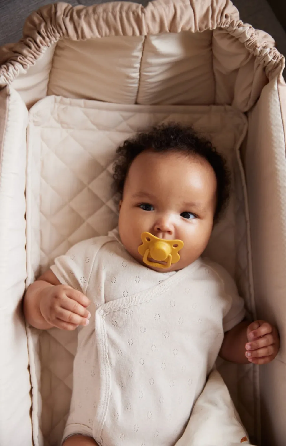 Liften er opdateret og lever op til de nyeste europæiske sikkerhedsstandarder for lifte (EN-1466:2023). Med sit faste design og en liggelængde på 70 cm er liften ideel til babyer op til 6 måneder eller 9 kg, eller indtil din baby kan sidde op, rulle rundt eller løfte sig op på hænder og knæ.