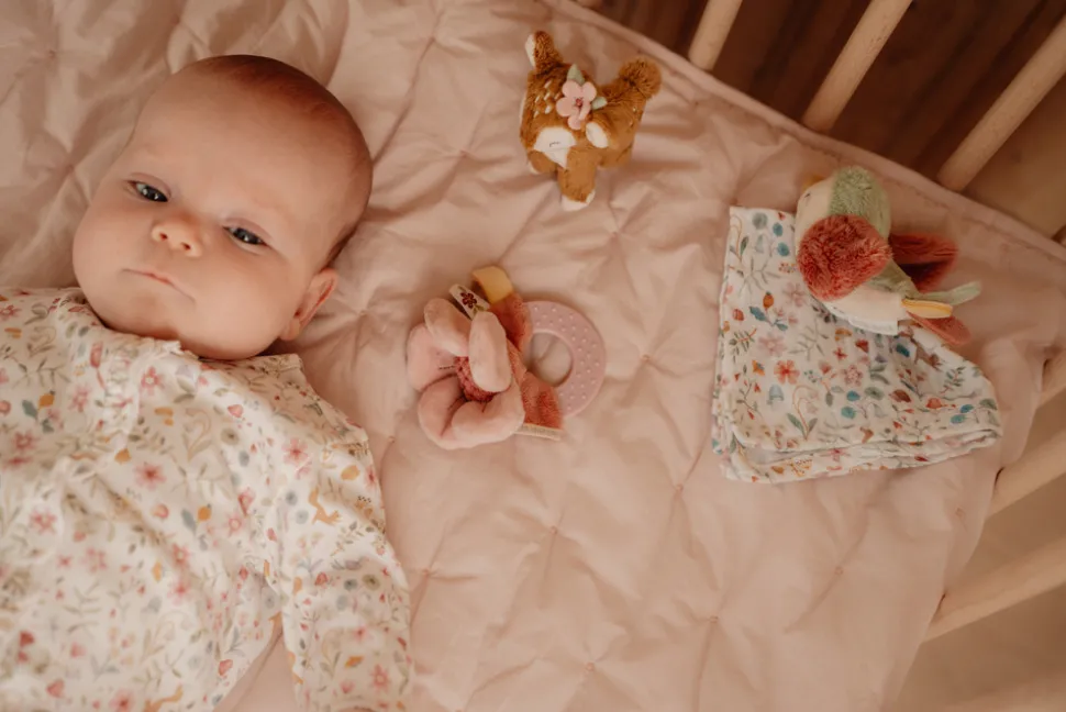 Denne gaveæske med alle favoritterne fra Fairy Garden-kollektionen er den perfekte barselsgave eller gave til babyshower. Denne smukke æske indeholder tre bløde produkter til at sove, putte og lege med. Nussekluden med en blød lille fugl er perfekt til at putte med, men også skøn til en omgang titte bøh leg. Den nuttede hjort er altid klar til et stort kram og eventyrlig leg. Sættet indeholder også en bidering, som giver trøst, når de første tænder begynder at komme frem, og den søde blomst på ringen stimulerer hånd-øje-koordination og nysgerrighed hos babyer. Alle tre produkter er pakket i en smuk gaveæske.