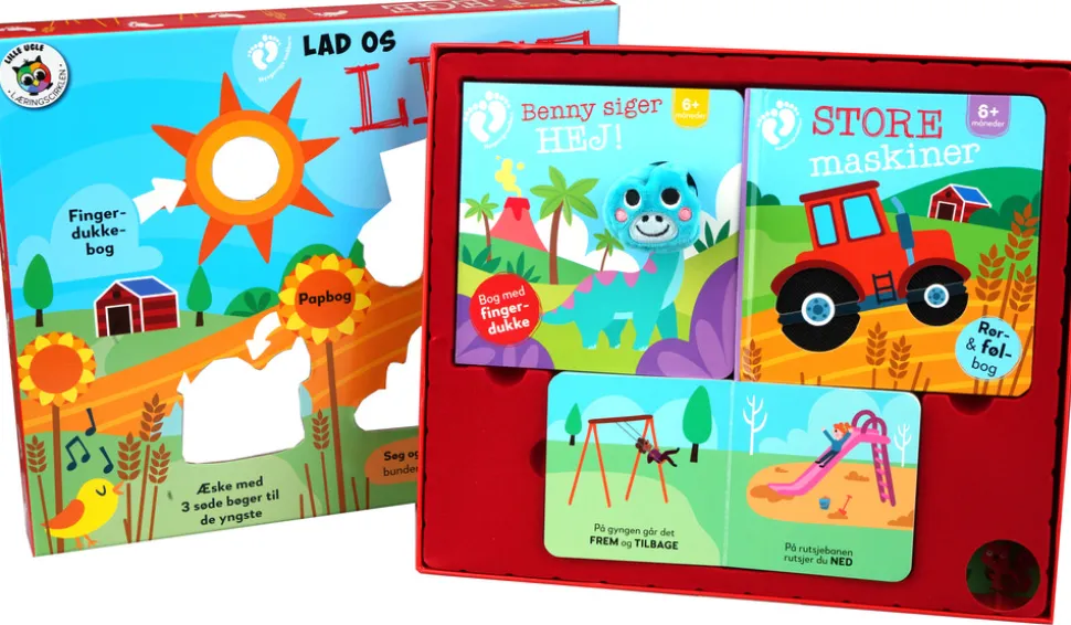 Med denne fine gaveæsker får du hele tre papbøger til de yngste børn. Æsken indeholder en papbog, en papbog med fingerdukke og en rør og føl-bog. Selve æsken med sine søde tegninger gemmer også en søge-leg.