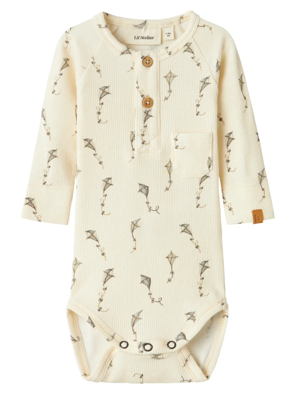 Gavo ls slim body fra Lil’ Atelier i farven TURTLEDOVE er et skønt valg til de mindste. Bodyen er fremstillet i blød og åndbar økologisk bomuld, som føles behagelig mod barnets hud og sikrer optimal komfort hele dagen. Den slim fit pasform giver en tæt og behagelig følelse, mens de fine træknapper og den lille brystlomme tilføjer et charmerende udtryk. Det søde drageprint gør bodyen ekstra hyggelig og velegnet til både hverdag og festlige lejligheder. Med trykknapper i bunden er det nemt og hurtigt at skifte ble, og bodyen holder sig flot vask efter vask.