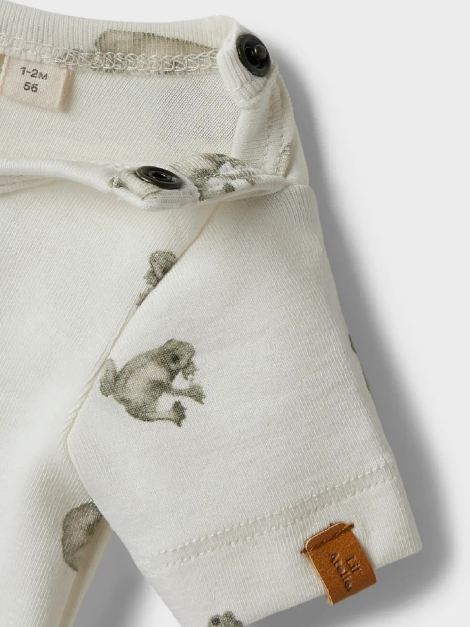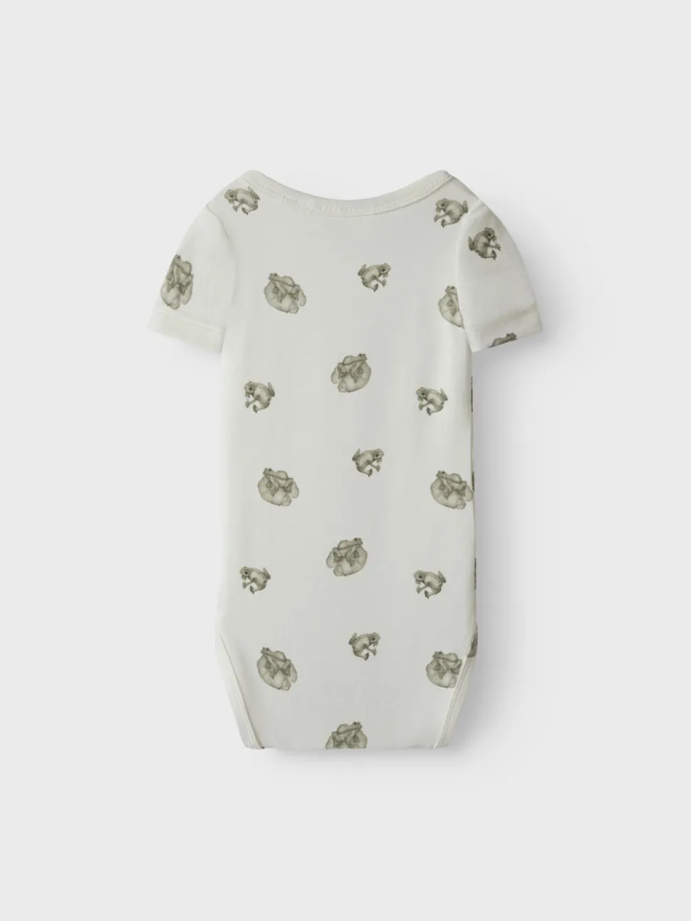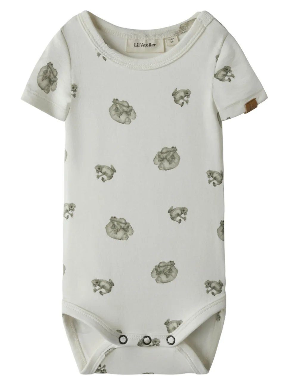 Giv din lille dreng et sjovt og unikt look med denne body med frøprint. Perfekt til både leg og afslapning, denne body er designet til at give din baby komfort og stil.