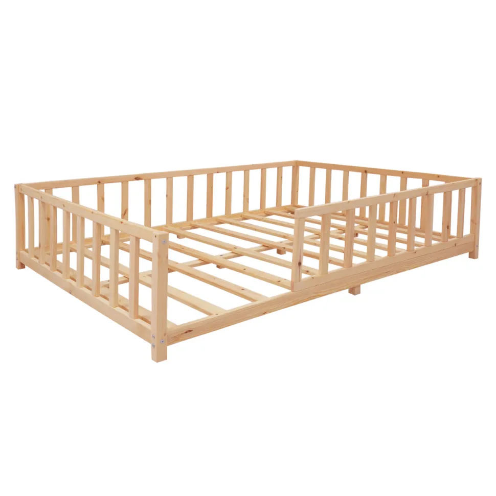 Kukka gulvsengen er fremstillet i overensstemmelse med Montessori-principperne, som har til formål at fremme barnets selvstændighed og læring fra en tidlig alder. Sengen har et rummeligt soveområde, der måler 140 x 200 cm, hvilket giver rigelig plads til at sove, lege og dele godnathistorier med forældrene. Den har robuste lameller og omfattende faldsikring på alle sider, hvilket sikrer et trygt sovemiljø. Fremstillet af massivt fyrretræ, garanterer sengen holdbarhed og kvalitet. Dens minimalistiske og tidløse skandinaviske design gør Kukka gulvsengen til en charmerende tilføjelse til ethvert børneværelse. Placeret lavt til jorden fremmer den selvstændighed, da børn nemt kan komme op og ned af sengen uden at skulle have hjælp fra forældrene. Der er 14 cm. mellem lamellerne. Max 100 kg.