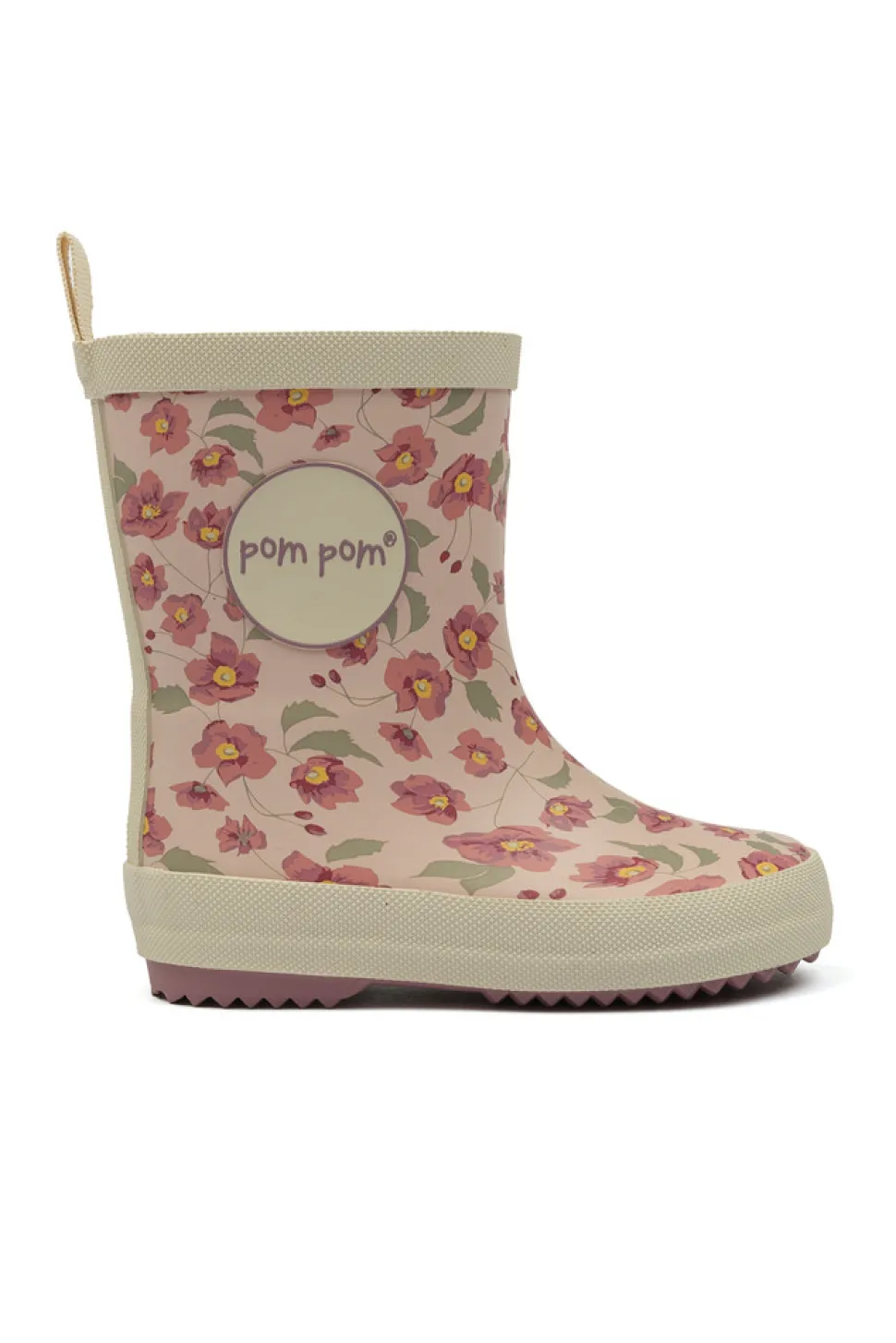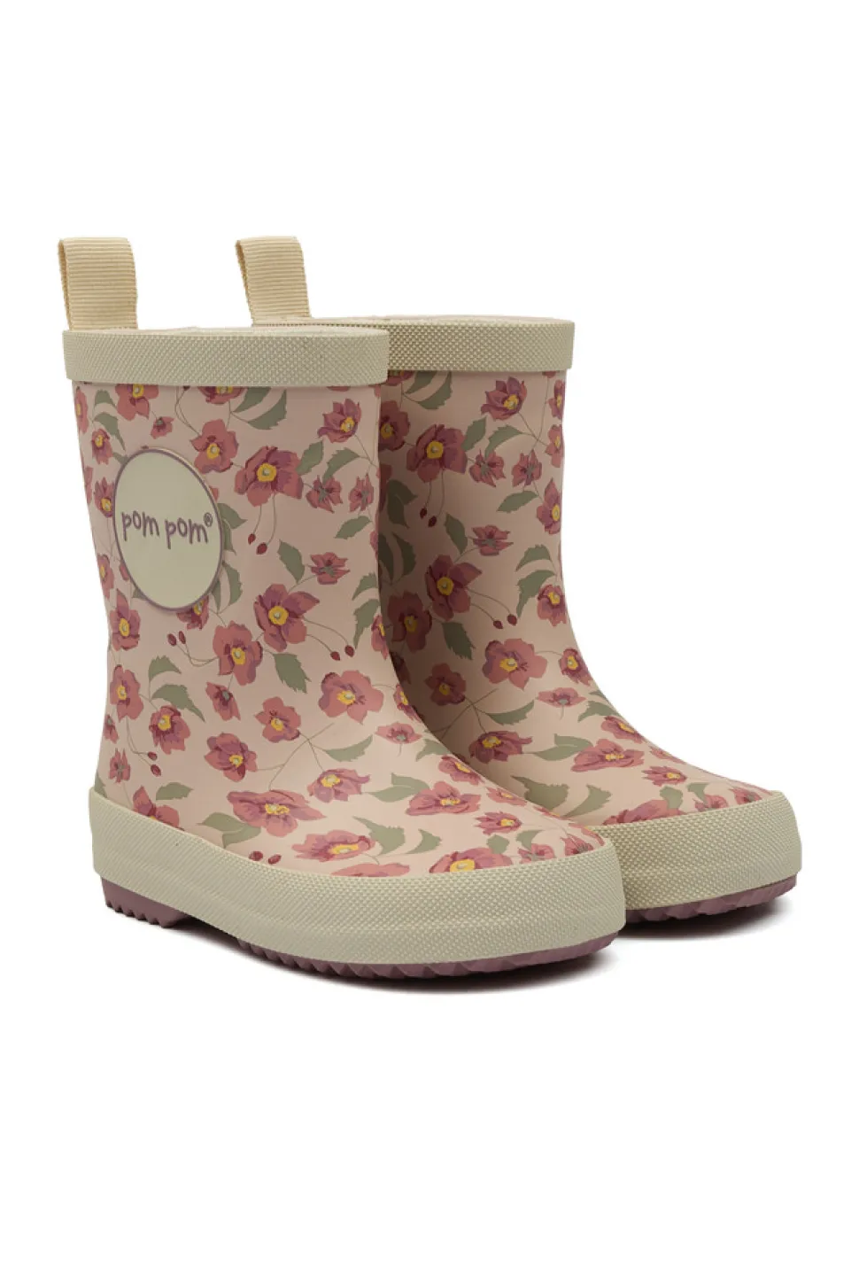 Pom Pom® Gummistøvler™. Smukke gummistøvler i naturgummi med et mat look og strop bagpå, logo på siden. Indvendigt er foret med tekstil, og i bunden en aftagelig sål. Støvlen er blød og fleksibel og i bunden er sålen med et mønstret rib-stribe, der giver et godt fodfæste.