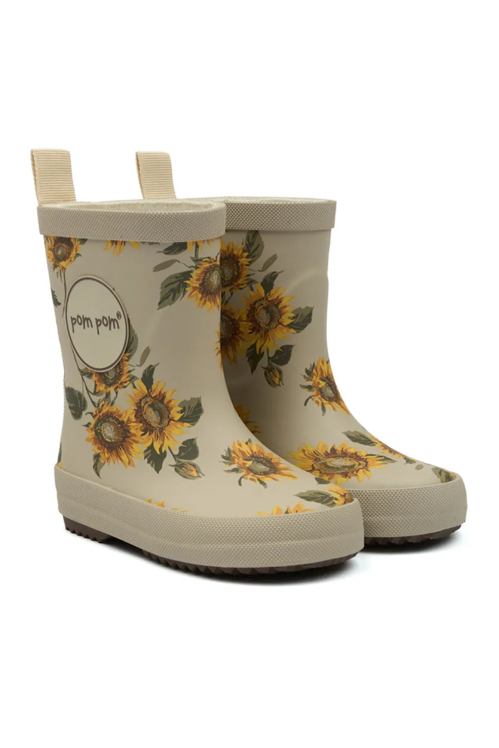 Pom Pom® Gummistøvler™. Smukke gummistøvler i naturgummi med et mat look og strop bagpå, logo på siden. Indvendigt er foret med tekstil, og i bunden en aftagelig sål. Støvlen er blød og fleksibel og i bunden er sålen med et mønstret rib-stribe, der giver et godt fodfæste.
