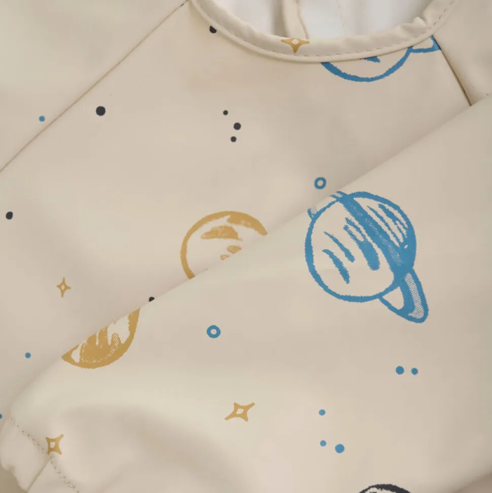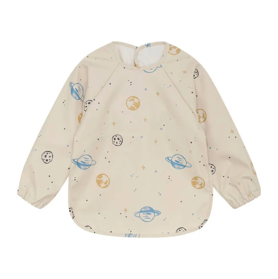 Smart PU-hagesmæk/jakke fra CeLaVi lavet i recycled materiale. Undgå pletter på dit barns tøj. PU-jakken er utrolig praktisk. Den har velcrolukning i nakken. Praktisk til både spisetid eller ved leg med maling m.m. Med all-over-print.
