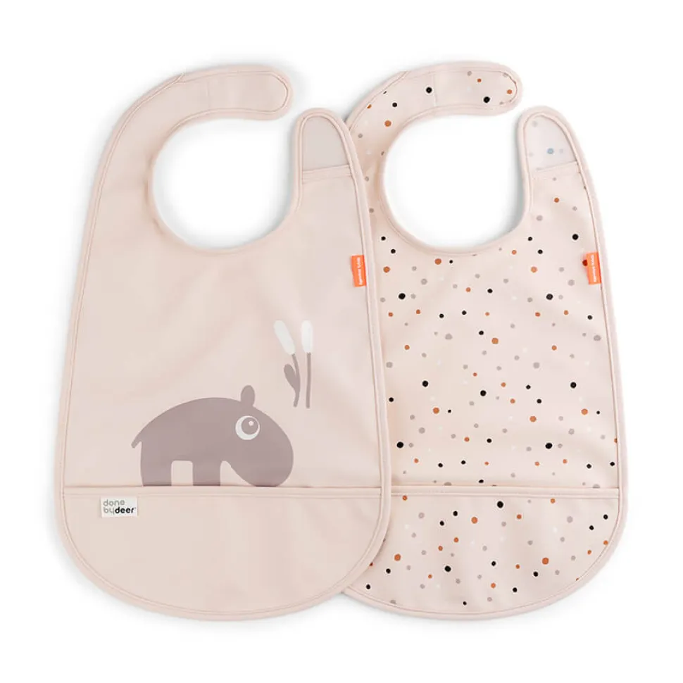 Din Deer friend er klar til at gøre spisetid lidt mindre rodet med dette praktiske sæt af to vandtætte hagesmække med Velcro-lukning. De er nemme at tørre af og den smarte lomme fanger den mad der ryger ved siden af og sparer dig en masse rengøringstid. De bløde hagesmække har en smart Velcro-lukning, der gør dem nemme at tage af og på.