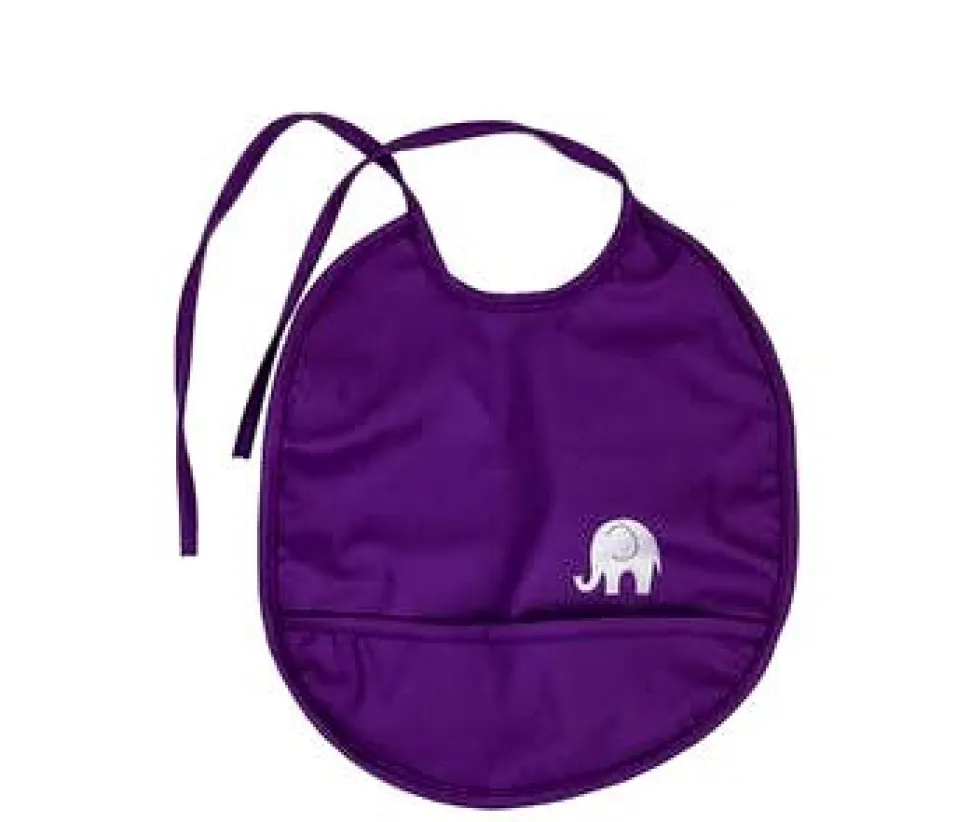 Rund, bred og praktisk hagesmæk fra CeLaVi.Åbnes og lukkes med bindebånd i nakken.Gummibelagt forside gør det nemt at tørre den af efter spisning.
