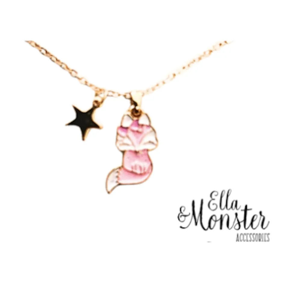 Skovens lille hemmelighed! En halskæde med Flora Ræv – en lille, finurlig ven fra eventyrskoven. Hun hvisker historier i vinden og gemmer stjernestøv bag ørene.