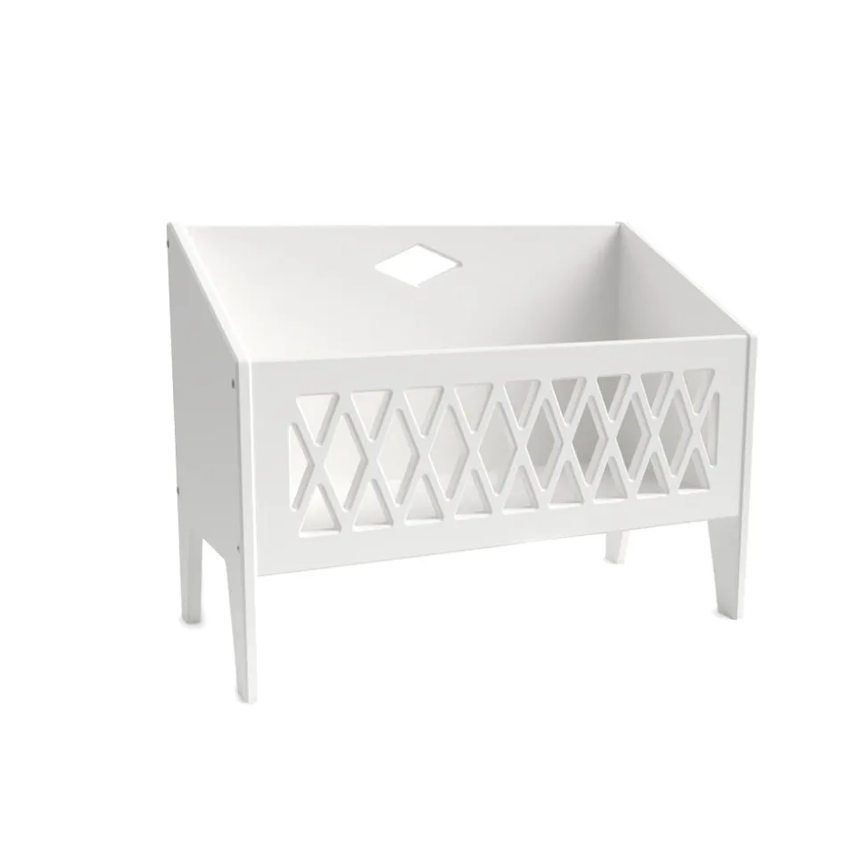 Harlequin Bogkassen tilbyder elegant og praktisk opbevaring til alle yndlingsbøgerne, som hele tiden flyttes rundt i huset fra værelse til værelse. Passer perfekt ind i dagligstuen ved siden af sofaen eller legemadrasserne til en hyggelig læsestund, eller sæt den ved siden af senge på værelset så yndlings godnat bogen er lige indenfor rækkevide. Designet giver barnet mulighed for at se og bladre gennem en række bogomslag og vælge dagens favorit.
