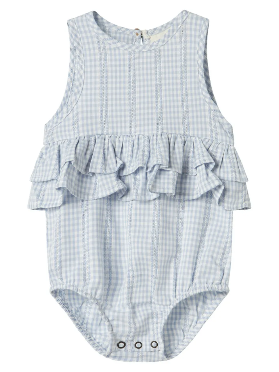 Giv din lille pige et charmerende sommerlook med denne yndige sommerdragt, der har smukke flæser og en praktisk bodystocking funktion. Denne dragt er perfekt til varme sommerdage, hvor komfort og stil går hånd i hånd. Lavet af let og åndbart materiale, sikrer den en behagelig pasform hele dagen.