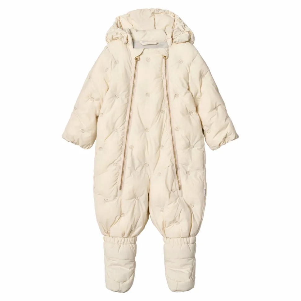 Dragten er foret med blød fleece og har elastik ved ærme- og benåbninger, som hjælper med at holde vanter, sokker og støvler på plads – samtidig med at den beskytter mod vind og vejr. Fyldet er lavet af genanvendt polyester, som giver en jævn, blød varmeisolering. Overfladen er vandafvisende og fri for skadelige stoffer som PFOS og PFOA.