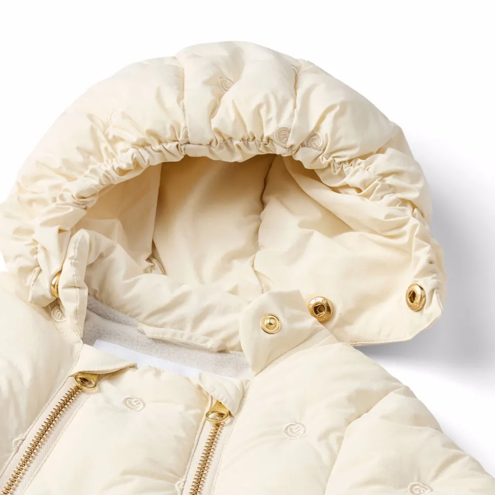 Vandafvisende babydragt i genanvendt nylon – perfekt til kolde dage i barnevognen.