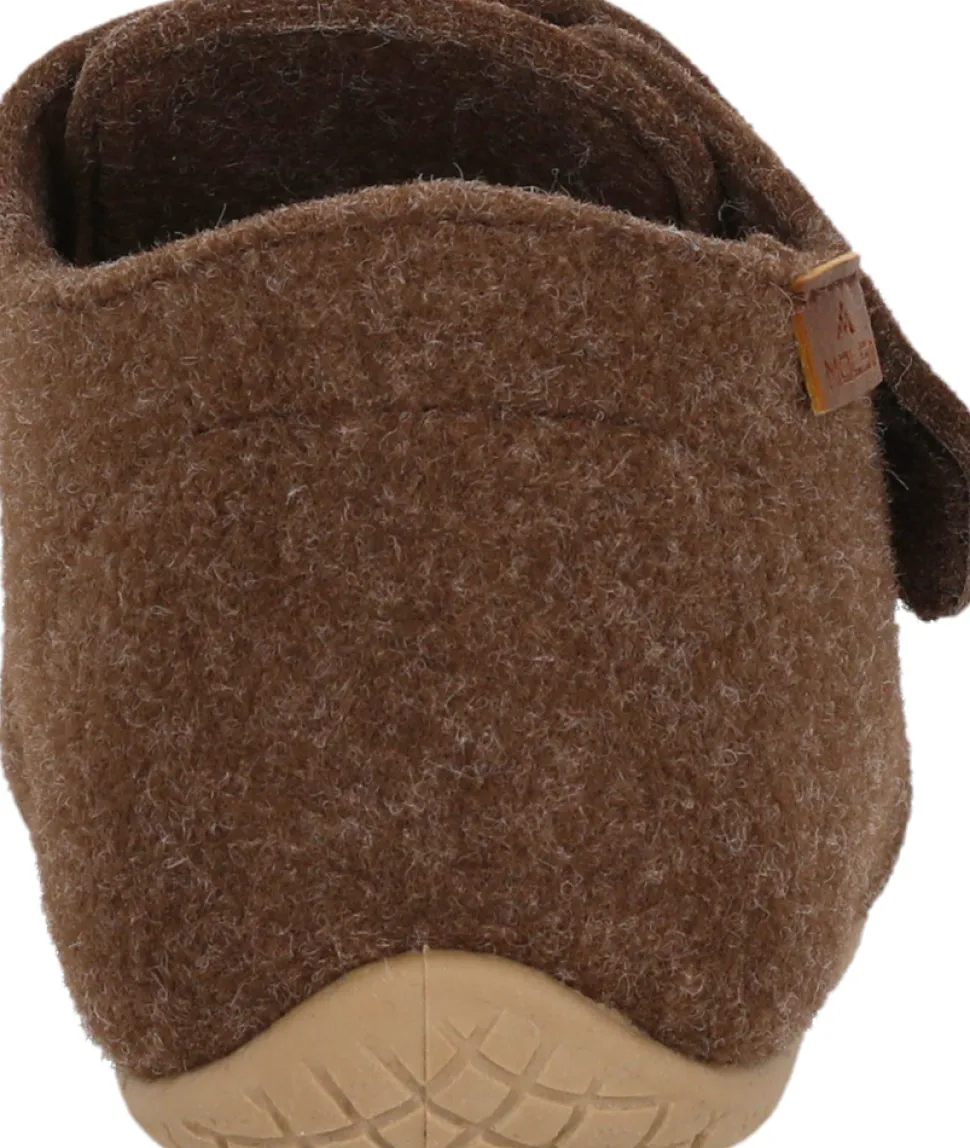 Med hjemmeskoen Heiris til børn fra MOLS får du en feel good-sko til hyggelige timer derhjemme. Det filtlignende polyester materiale er varmt, blødt og slidstærkt. Den brede velcrorem sikrer et godt greb om foden. Den skridsikre TPR-sål giver et godt greb og følger foden, når man går. Den lukkede hjemmesko Heiris fra MOLS er perfekt til en hyggelig aften derhjemme eller til brug i institution.