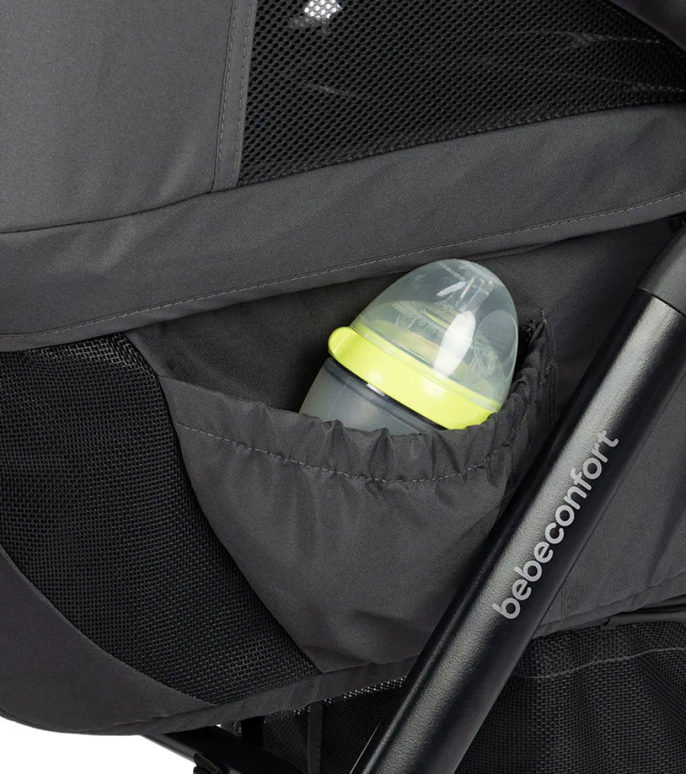 • Nem foldemekanismeBebeconfort Helios i farven Mineral Graphite er en moderne og praktisk klapvogn, der gør hverdagen lettere for både dig og dit barn. Vognen har et let og kompakt design, som gør den nem at manøvrere og transportere, uanset om du er på farten i byen eller ude i naturen. Den rummelige kaleche beskytter effektivt mod sol og vind, og de indbyggede ventilationspaneler sikrer et behageligt klima for barnet. Ryglænet og fodstøtten kan justeres, så dit barn altid sidder eller ligger komfortabelt. Den store opbevaringskurv giver plads til alt det nødvendige, og med den smarte foldemekanisme kan vognen hurtigt pakkes sammen og tages med på tur.