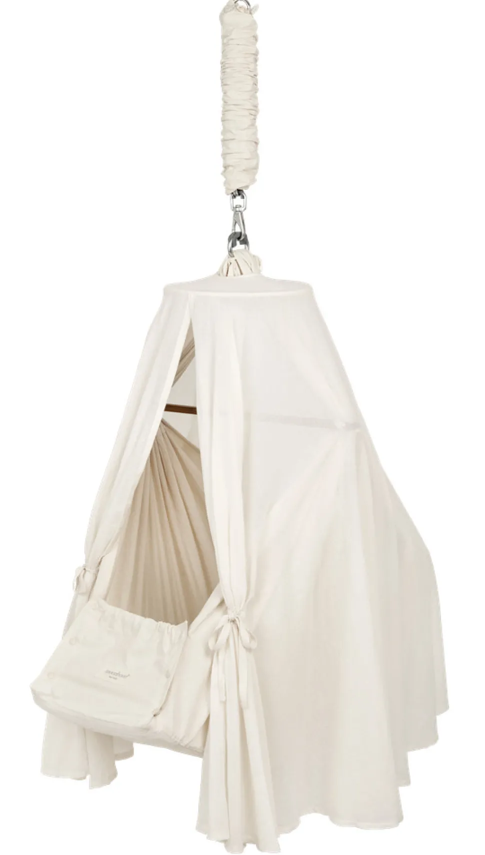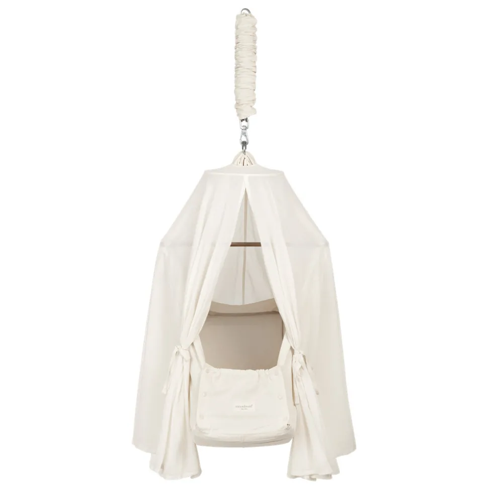 En slyngevuggehimmel i åndbar letvævet GOTS-certificeret bomuld, designet til Moonboon slyngevuggen. Reducerer støj og lys fra omgivelserne for at give din baby en god kvalitetssøvn. Slyngevuggehimmelen er nem at installere og justere. Det perfekte tilbehør til din slyngevugge. Vaskes på et bomulds program ved 40 grader. Tørres i tørretumbler eller lufttørres og stryges ved lav temperatur