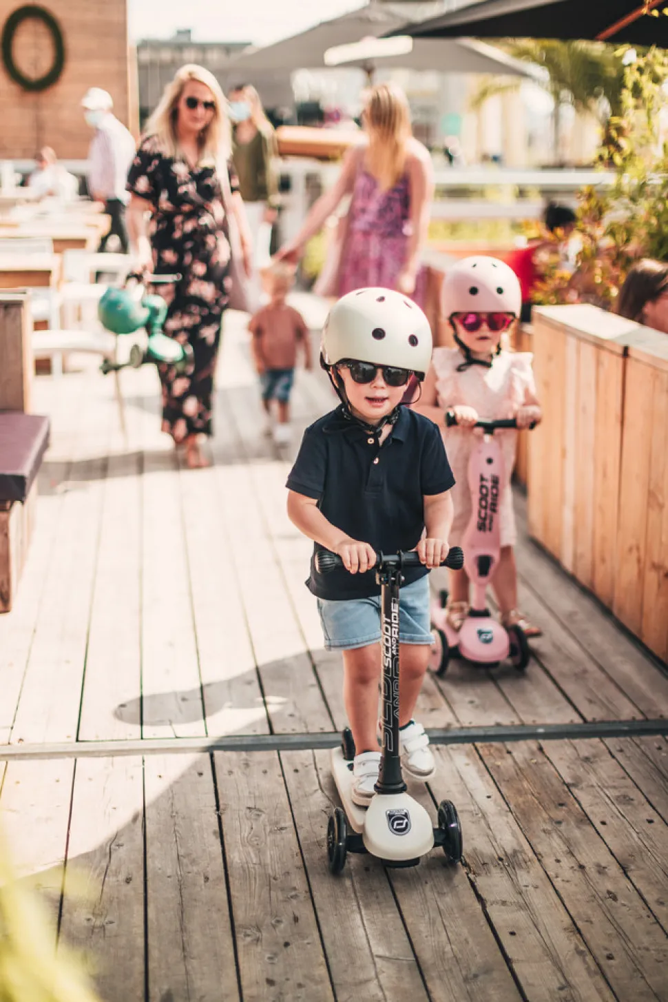 Sikkerhed først! Denne cykelhjelm til børn er testet i henhold til alle sikkerhedsstandarder og er derfor et sikkert valg til dit barn. Hjelmen har en magnetisk lukning, som gør det nemt for børn at åbne og lukke hjelmen selv. Magneten sikrer også, at huden aldrig bliver klemt! LED-lyset på bagsiden af hjelmen giver ekstra synlighed og sikkerhed i trafikken. Alle Scoot´N´Ride hjelme er justerbare i størrelsen for at sikre optimal pasform.