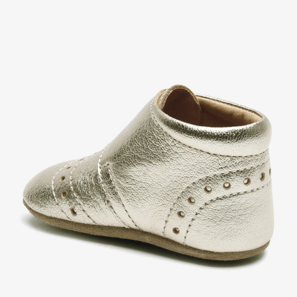 Hjemmesko, som også kan bruges som prewalker med velcrolukning, skindfoer og en blød sål af ruskind og skridsikker gummi, der giver den optimale støtte. Hjemmeskoen er produceret i 100% naturligt og åndbart læder, der er lukket rundt om foden og samtidig giver foden plads til at vokse.
