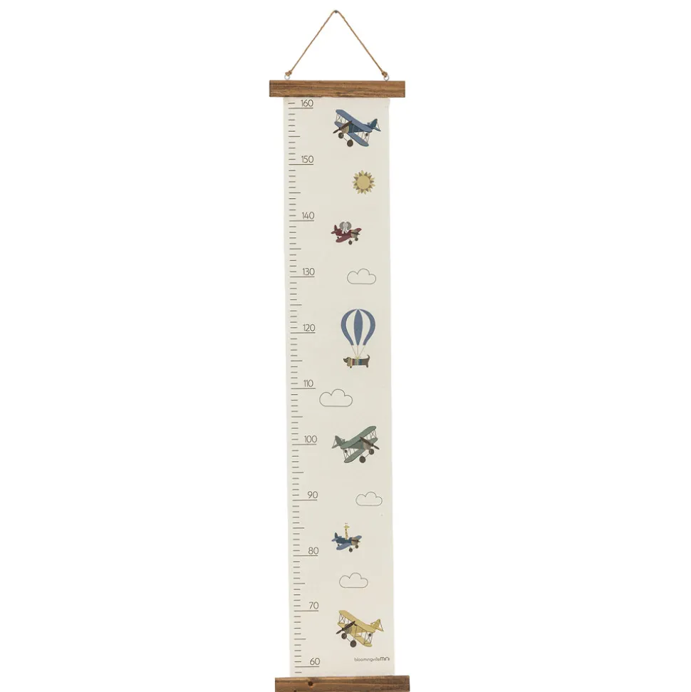 Plane Højdemåleren fra Bloomingville MINI har to formål: at følge udviklingen i barnets højde og at give et fint og charmerende præg til indretningen. Højdemåleren er dekoreret med fine illustrationer af flyvemaskiner og dyr i luften. Højdemåleren kommer i et rør med illustrationer på, hvilket gør den oplagt at give i gave.