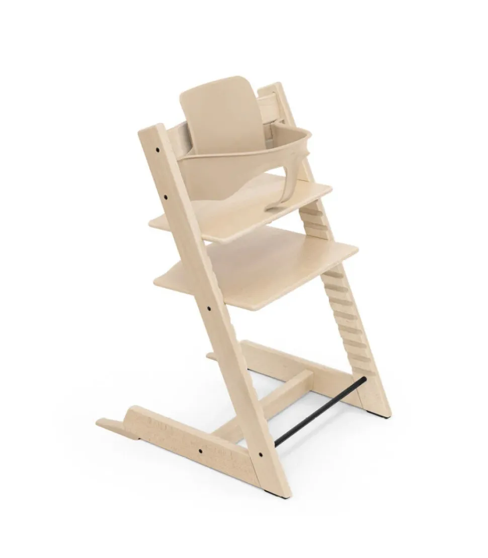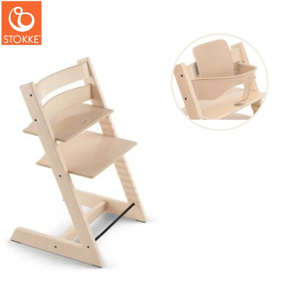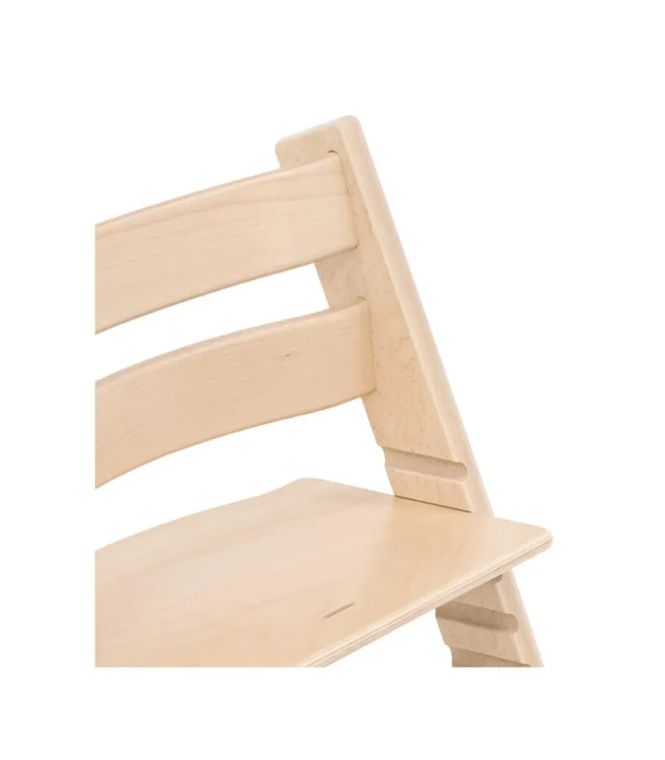 Tripp Trapp® højstolen er produceret i dyrket bøg, som er en stærk træsort, der gør produktet stabilt og holdbart, og sikrer en lang levetid. Tripp Trapp® højstolen løfter barnet op til spisebordet og skaber nærhed og fællesskab mellem barn og voksen, om det er spisetid eller hyggetid ved spisebordret. Det er let at tilpasse sidde- og fodplade i både højde og i dybden, i takt med at barnet vokser. Dermed opnås en optimal siddestilling med god bevægelsesfrihed og støtte for både fødder og ryg. Den stabile fodplade giver dit barn sikkerhed og frihed til at bevæge sig på stolen, hvilket stimulerer barnets motoriske udvikling. Fuld fodstøtte sikrer desuden at barnets ben ikke kommer til at sove. Når stolen er justeret korrekt sidder dit barn behageligt og ergonomisk korrekt uanset alder. Med Tripp Trapp® højstolen kommer dit barn til at sidde med ved spisebordet og nyde måltiderne sammen med resten af familien. Det solide og holdbare design gør at Tripp Trapp® stolen kan anvendes som højstol og senere som en ekstra stol – når der er gæster eller når der er brug for en skrivebordsstol, og med et klassisk look vil stolen aldrig gå af mode.