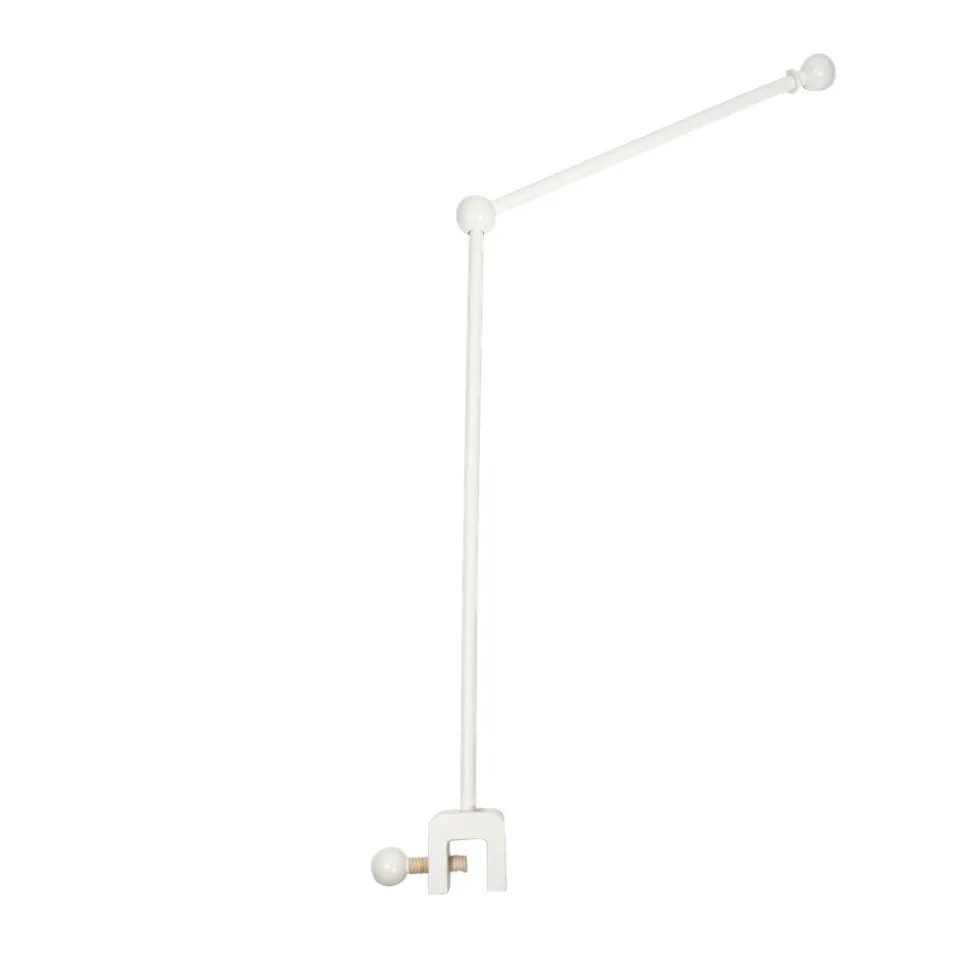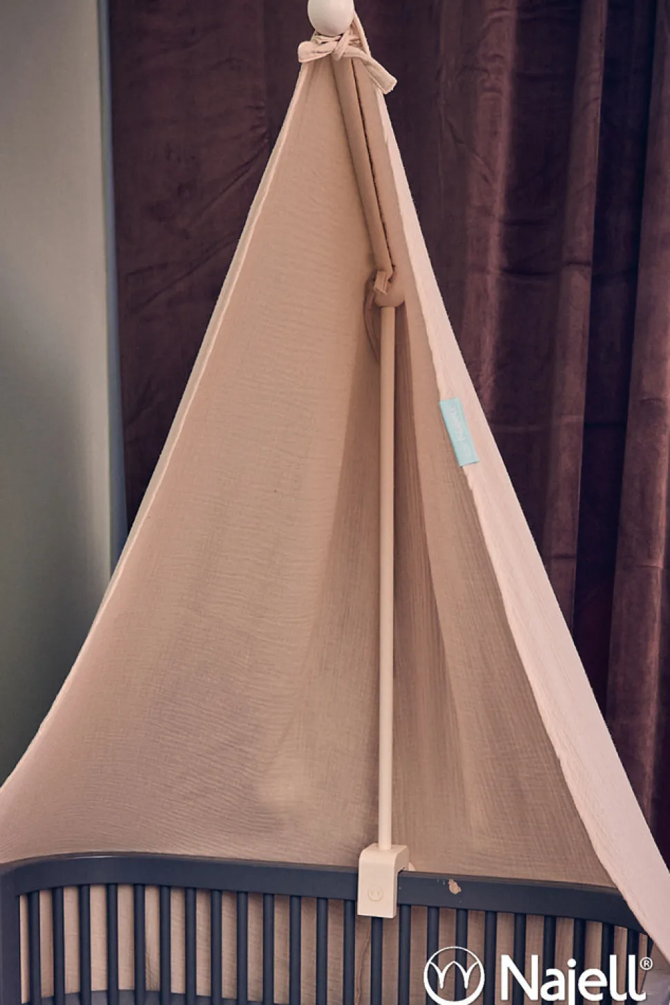 Najell holder til uro eller himmel, passer til senge med tremmer, og monteres nemt på enhver seng. Med en himmel skaber man et ekstra trygt sovemiljø til den lille, ved at skærme lys væk. Der kan også monteres en sød lille uro, som skaber hygge. Med mulighed for enten himmel eller uro, er denne holder en perfekt harmonisk tilføjelse til ethvert børneværelse. mål. 43×60 cm. Justerbar til sengerammer med en bredde på op til 3,5 cm.