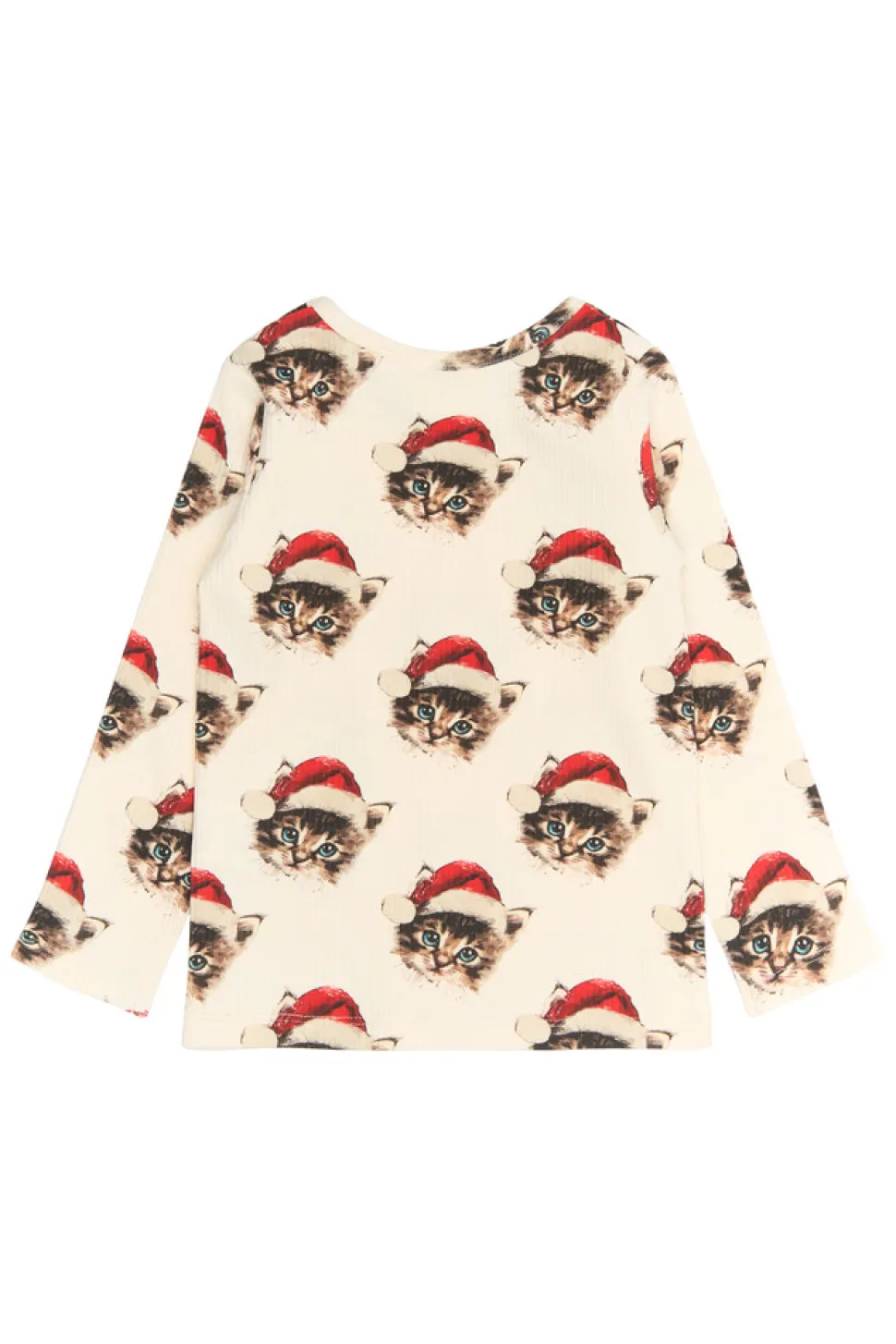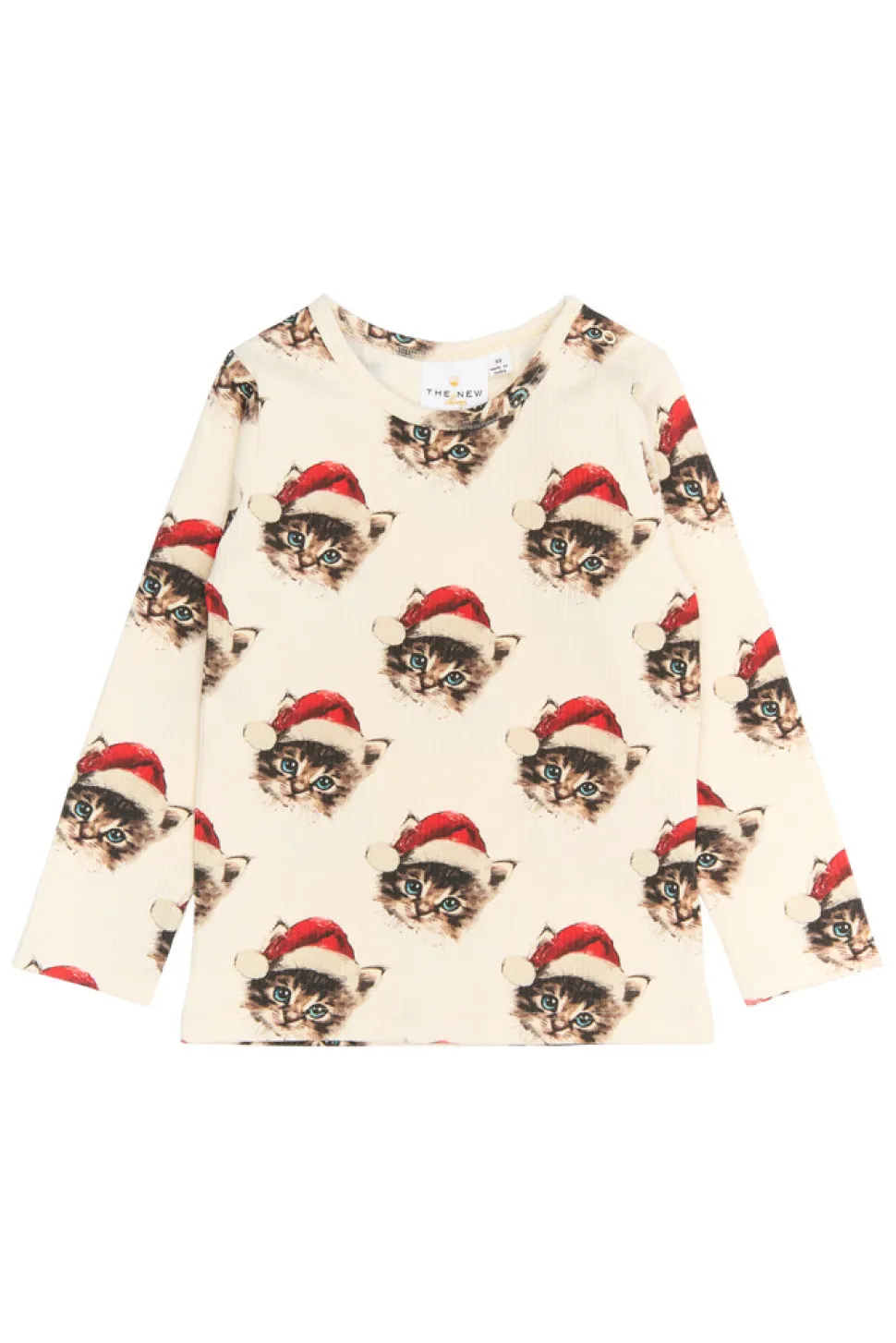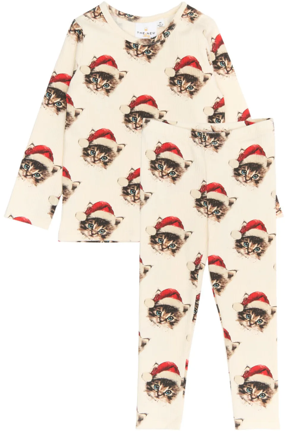 Dette pyjamassæt fra THE NEW Siblings er både hyggeligt og festligt – perfekt til sengetid i feriesæsonen. Det inkluderer en langærmet top og matchende bukser med et sjovt all-over print, der fås i to versioner: katte iført nissehuer eller dinosaurer i juletøj. Det bløde og strækbare ribbede stof sikrer god komfort og lang bevægelsesfrihed hele natten.