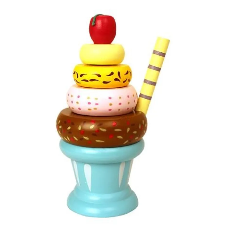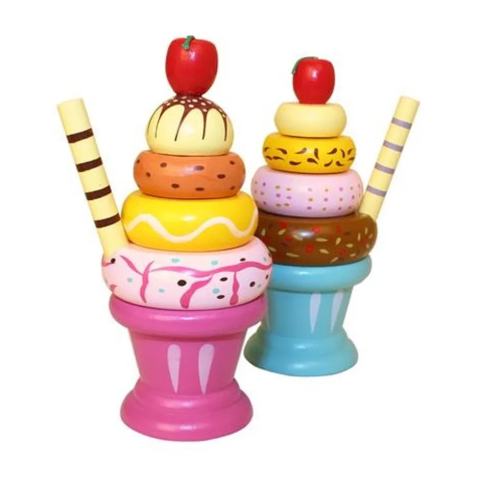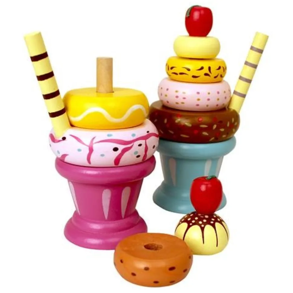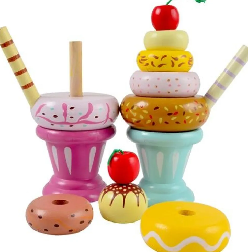 Farverige is toppe i serveringsglas alt sammen i træ og med masser af farver.