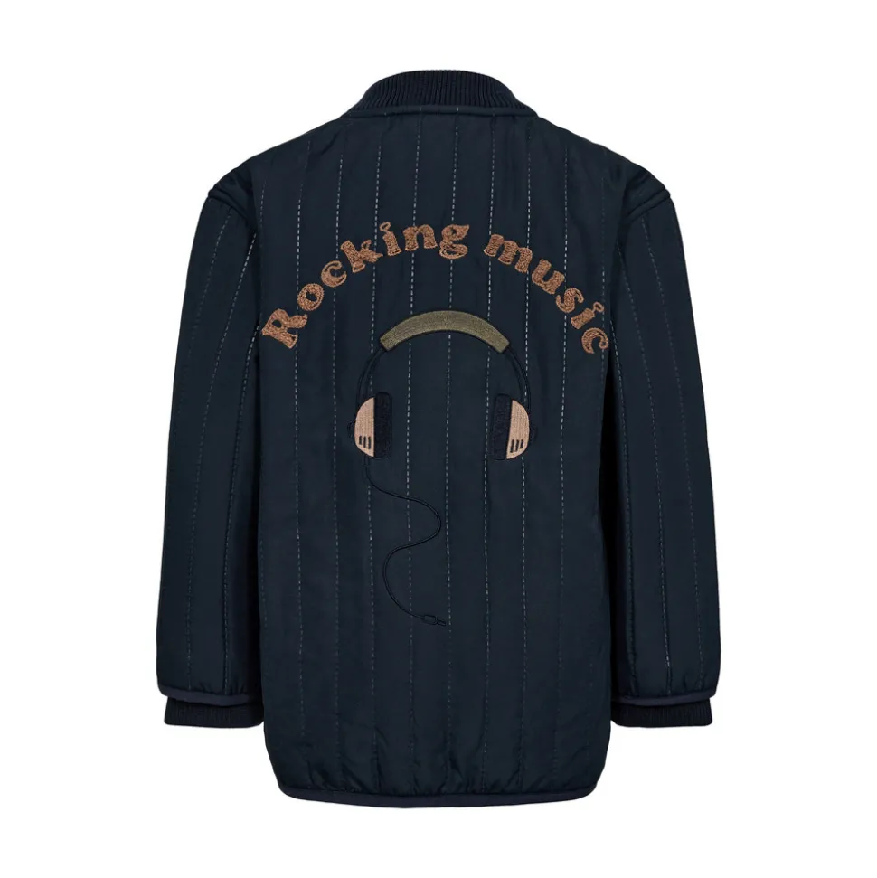 Jakke i navy, med 2 lommer foran og logo på brystet. Lukkes med lynlås