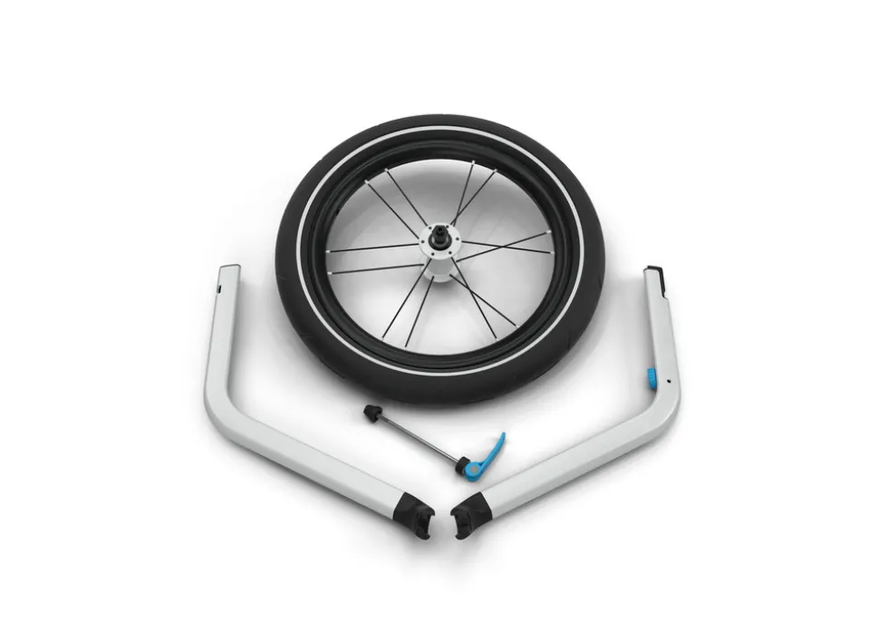 Med dette kit kan du forvandle din Thule Chariot til en effektiv løbevogn. Sættet klikkes nemt på Thule Versawing, og hjulet kan retningsjusteres så man sikrer ligeud-kørsel.