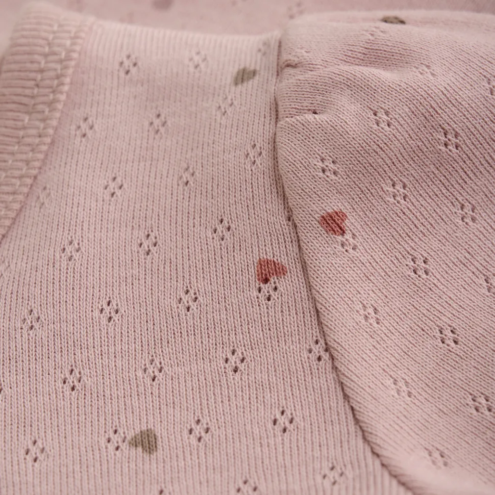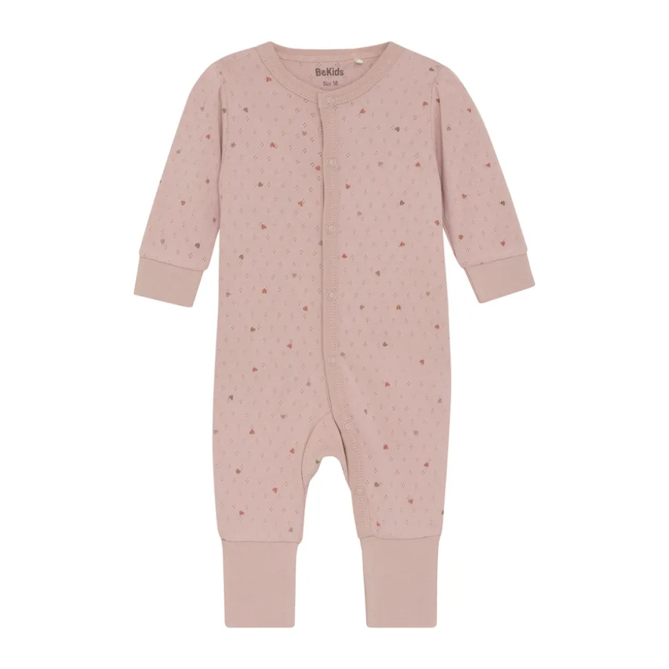 Sød jumpsuit fra BeKids med flot hjerteprint i elegant vævet struktur. Fremstillet i blødt og skånsomt materiale, der giver høj komfort til de små. Praktisk lynlås foran gør det nemt at tage tøjet af og på. Et charmerende og stilfuldt stykke tøj til både leg og hvile.