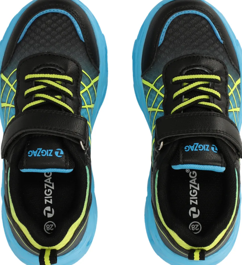 Kalmi Sneakser m. Lys fra ZIG ZAG er perfekte til børn, der elsker fart og sjov! Skoene har en sej blå sål med indbyggede lys, der blinker, når barnet går eller løber – det gør dem ekstra populære på legepladsen. Overdelen kombinerer sort og blå mesh med flotte neon-gule detaljer, som giver et sporty look. Skoene er nemme at tage af og på med praktisk velcrolukning og elastiksnøre, så de sidder godt på foden hele dagen. Den bløde og fleksible sål sikrer god komfort, og materialerne er lette at holde rene. Perfekte til både hverdag og festlige lejligheder!
