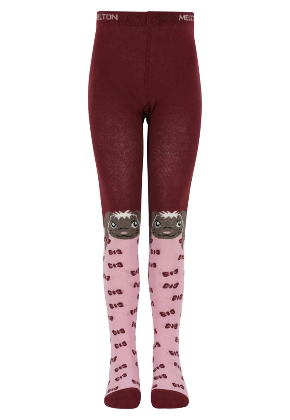 Bomuldstights fra MELTON. Tightsene er dekoreret med en sød kanin med sløjfer, én på hvert ben.