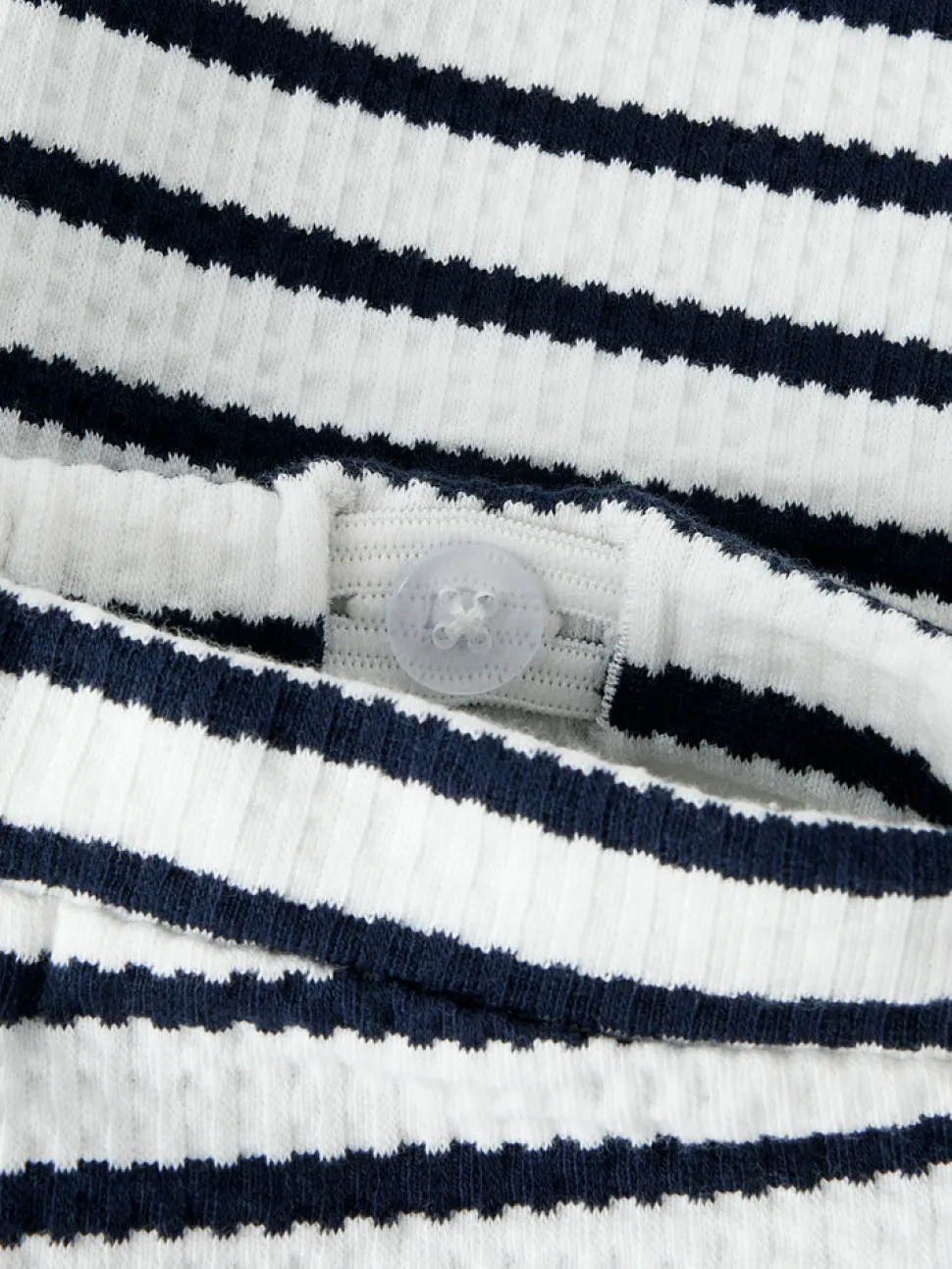 Klæd dit barn i komfort og coolness med trendy bukser, der sikrer en blød fornemmelse. Ribstrik har et lodret, stribet mønster og god elasticitet for en behagelig fornemmelse og et tidløst look.