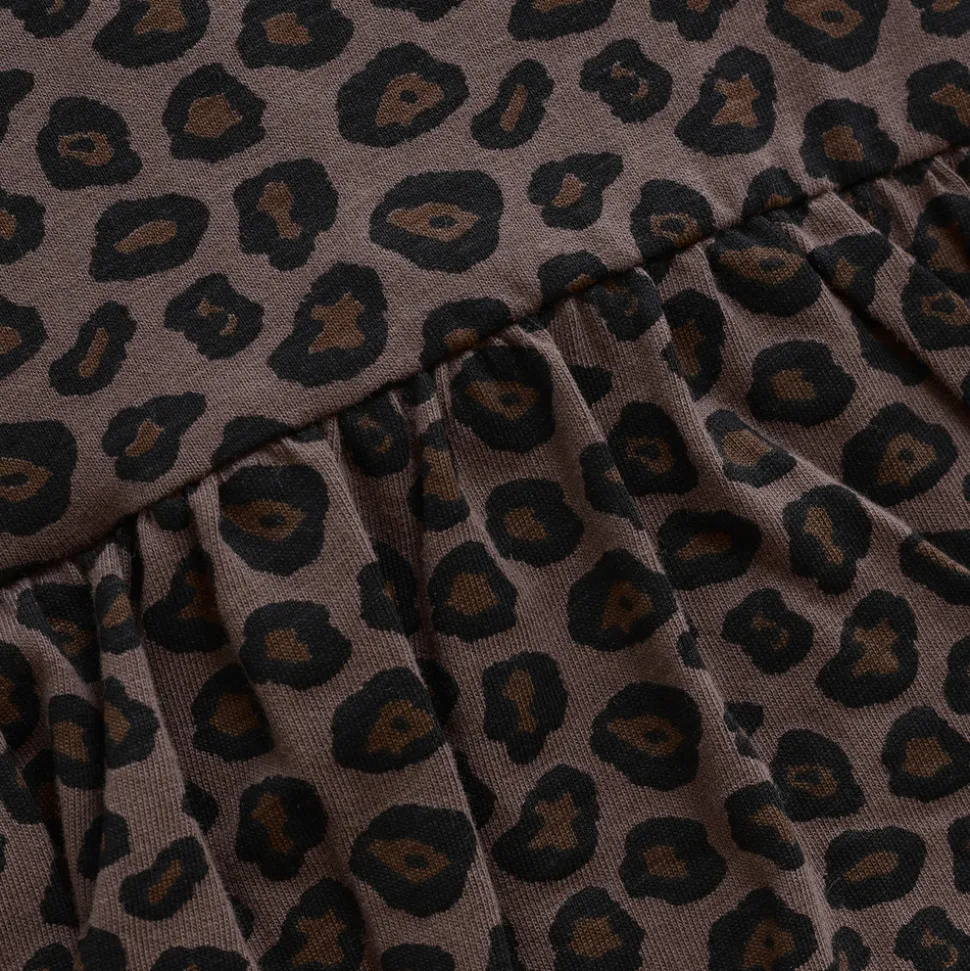 Denne langærmede kjole fra Minymo kombinerer et charmerende leopardmønster med praktiske detaljer, der gør den ideel til både hverdag og særlige lejligheder. Kjolen har diskrete knapper i ryggen, som gør den nem at tage af og på, samt en elastisk talje, der giver en sød og behagelig pasform.