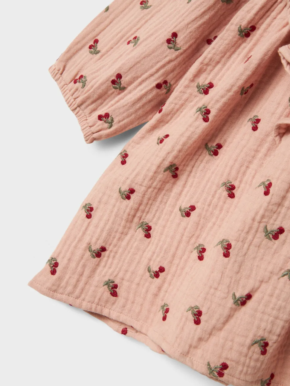 Opdater dit barns garderobe med smukke og stilfulde kjoler – perfekte til både hverdag og særlige lejligheder året rundt. Det vævede materiale har en fin krydsstruktur og en let tekstur, som giver kjolen et klassisk og rent udtryk med et strejf af elegance.