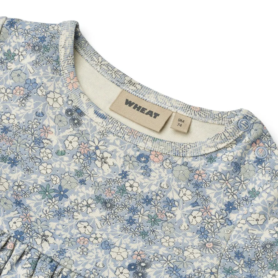 Wheat’s søde kjoler har en løs pasform, hvilket gør dem nemme og behagelige for din baby at have på. Kjolen har en flatterende skæring med sammenkrævninger, hvilket giver kjolen noget dejligt fylde. Den har trykknapper på skulderen for at gøre det lettere for dig at klæde din baby på.
