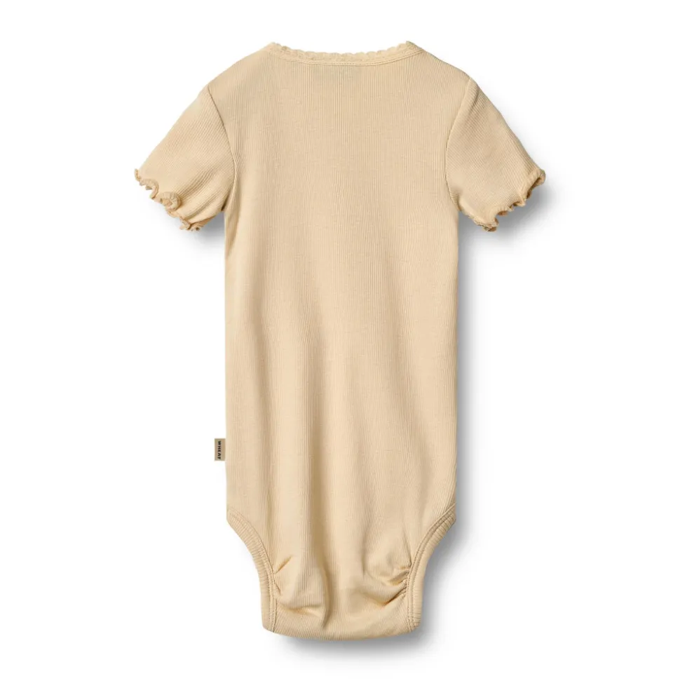 kortærmet ribkrop i en blød økologisk bomuldsblanding til din baby.